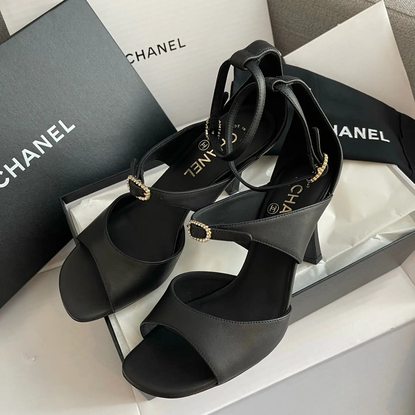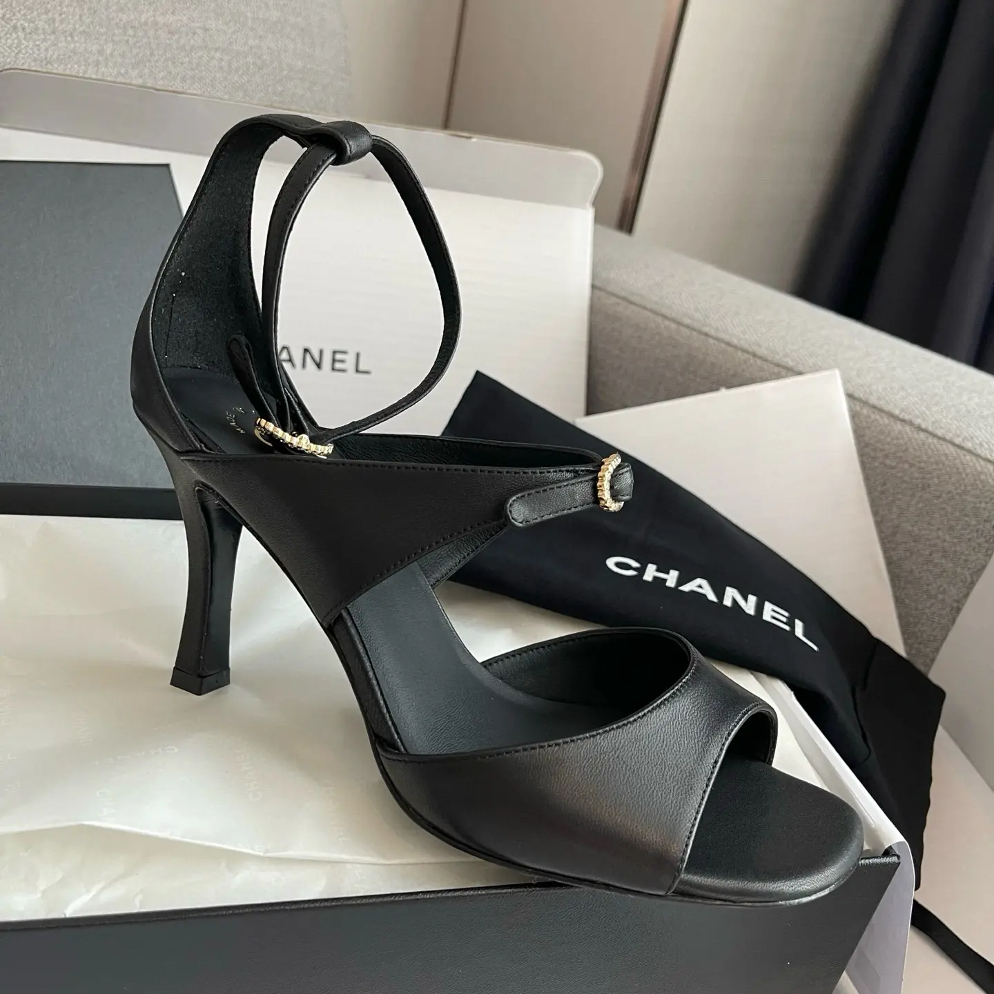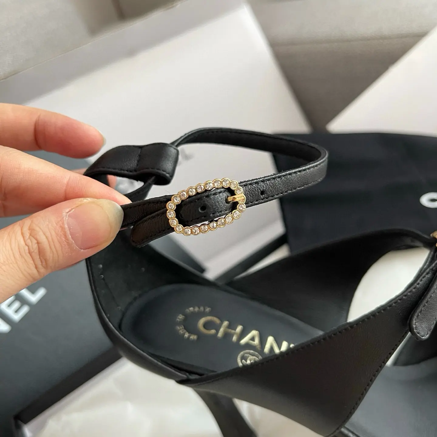 Purchasing-level Chanel latest Jennie-style sandals high heel rhinestone-buckled stilettos