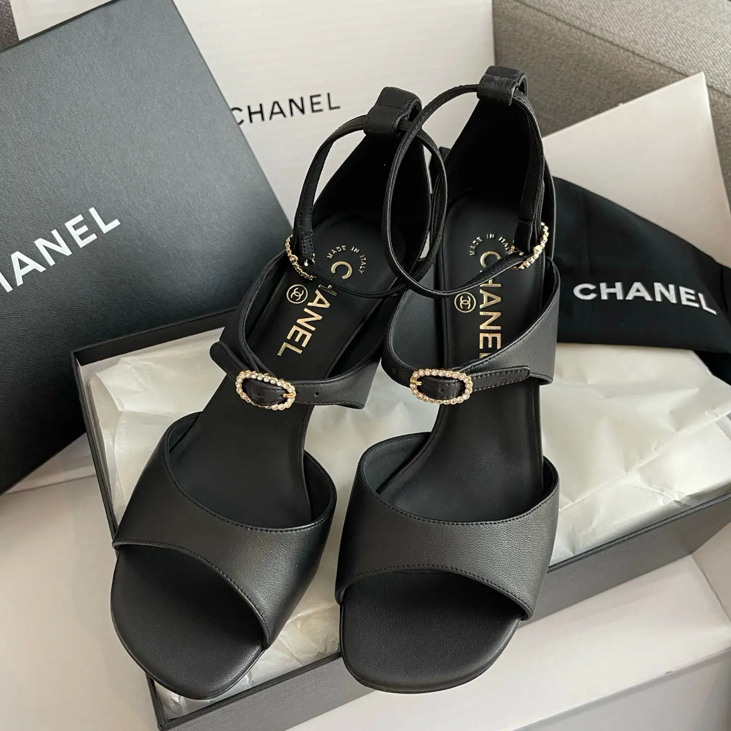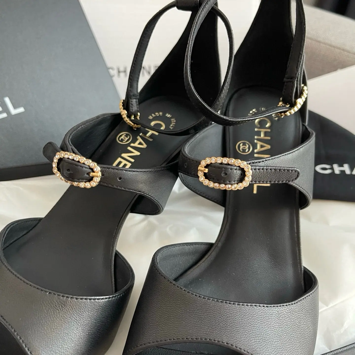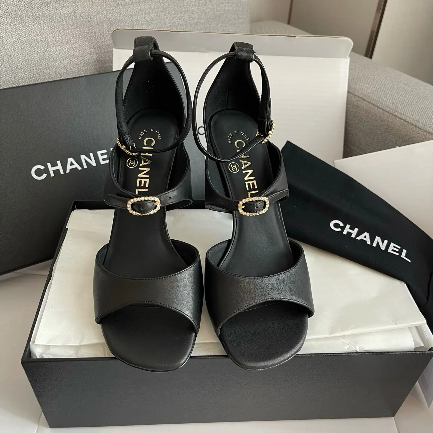 Purchasing-level Chanel latest Jennie-style sandals high heel rhinestone-buckled stilettos