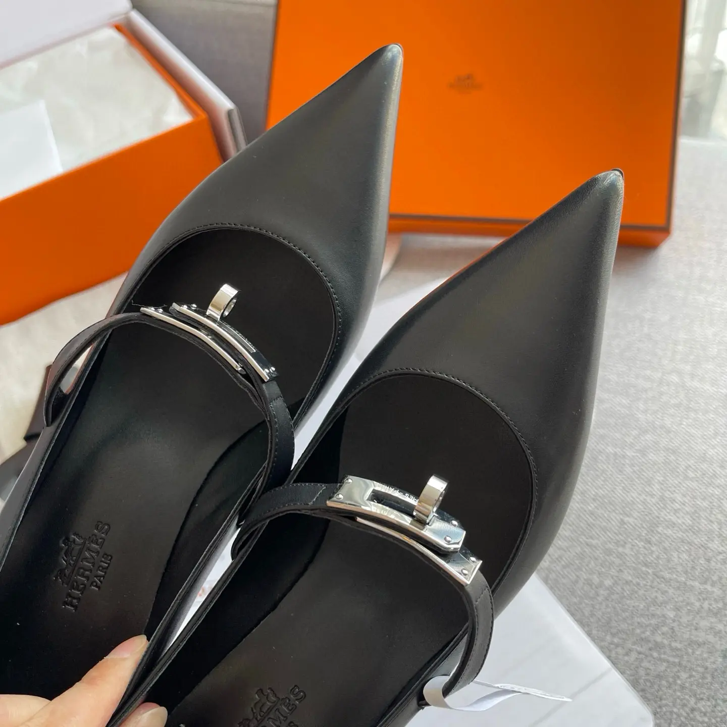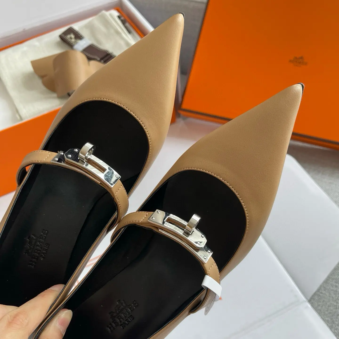 Purchasing level Hermes Spring and Summer latest kelly buckle pointed cat heel fashion shoes