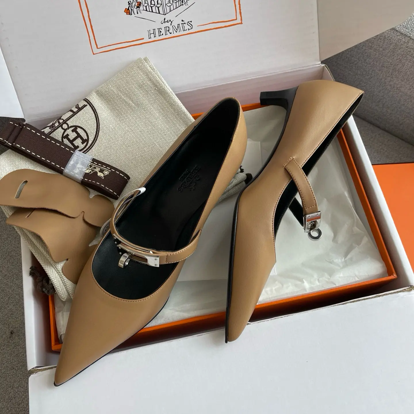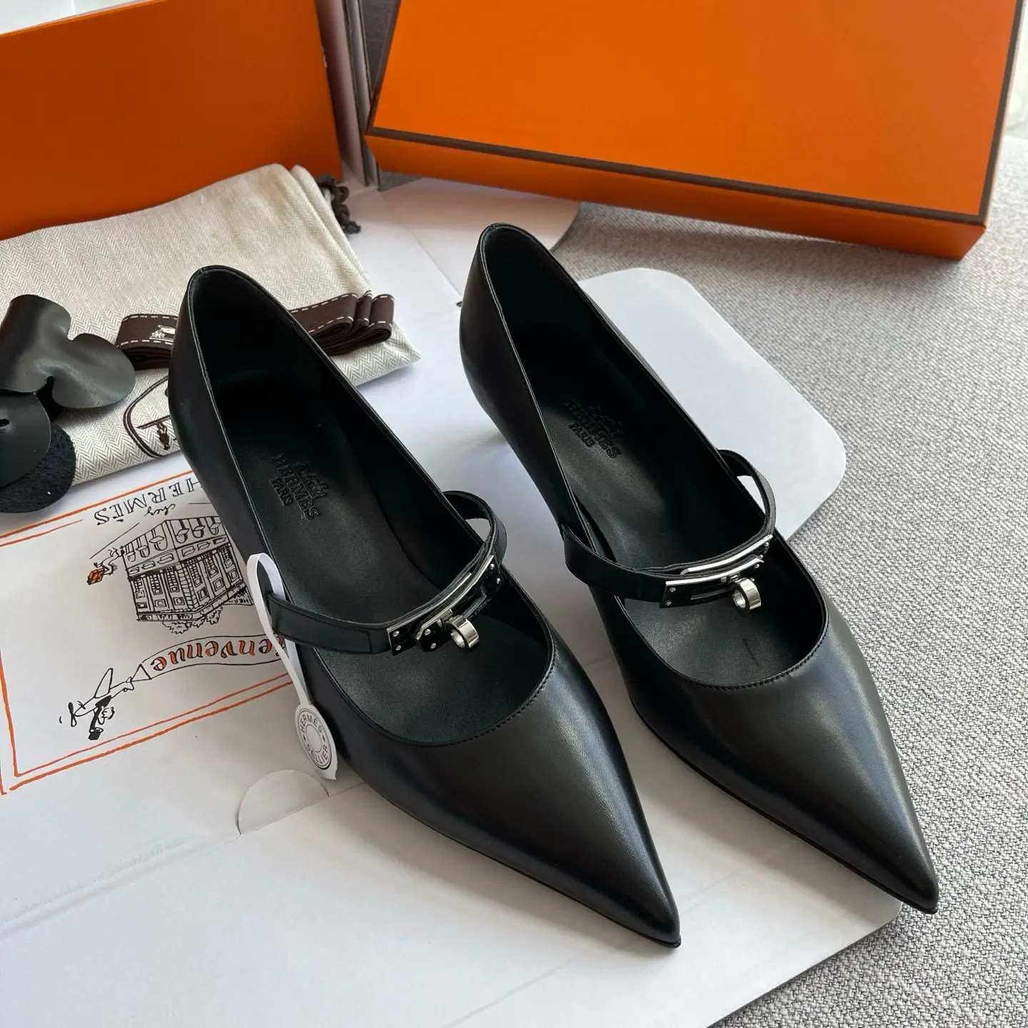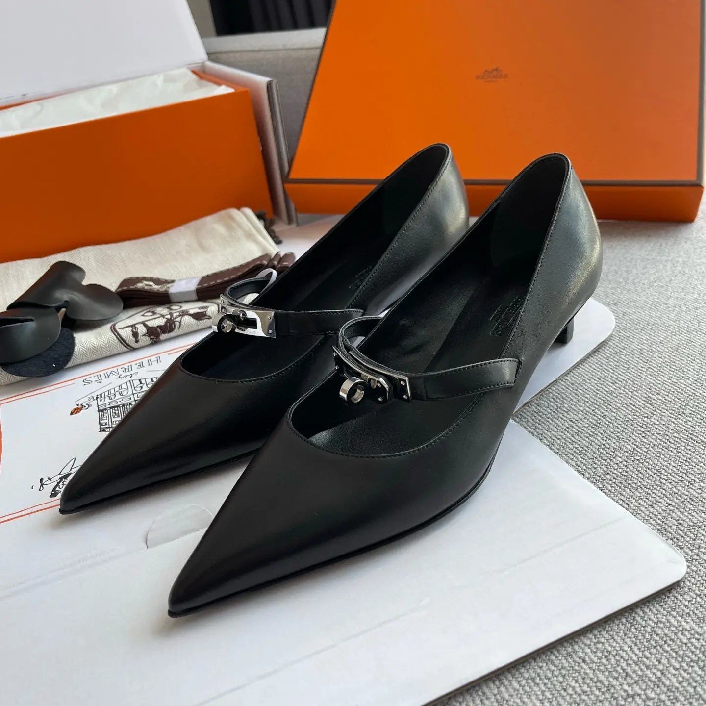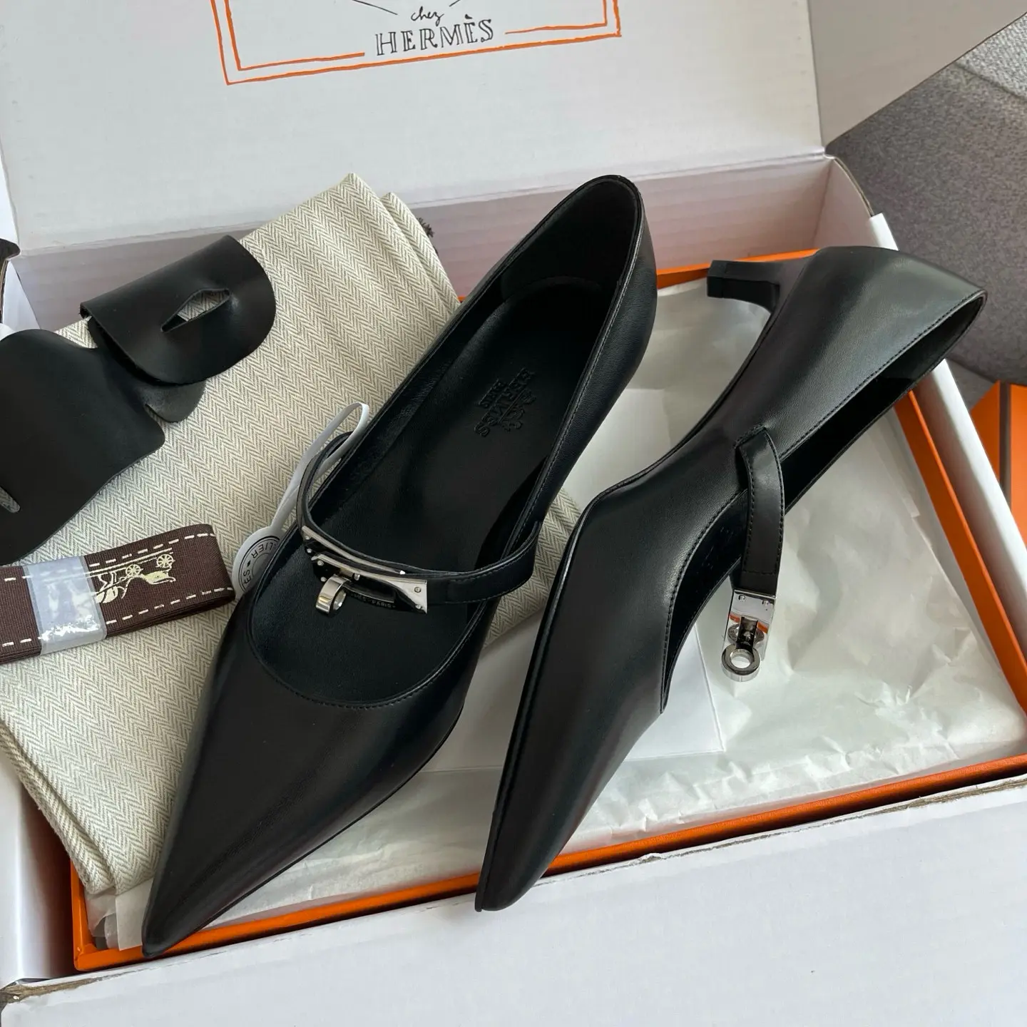 The Hermes 25SS Spring/Summer Kelly Buckle Pointed Cat Heel Shoes you described sound like a luxurious and versatile addition to any wardrobe. Here’s a refined breakdown of their features and styling potential: