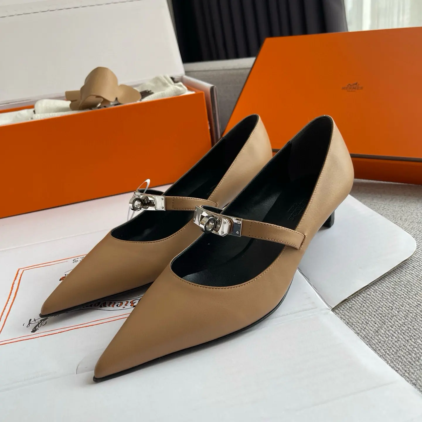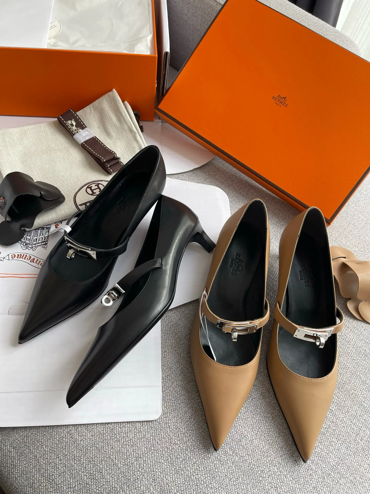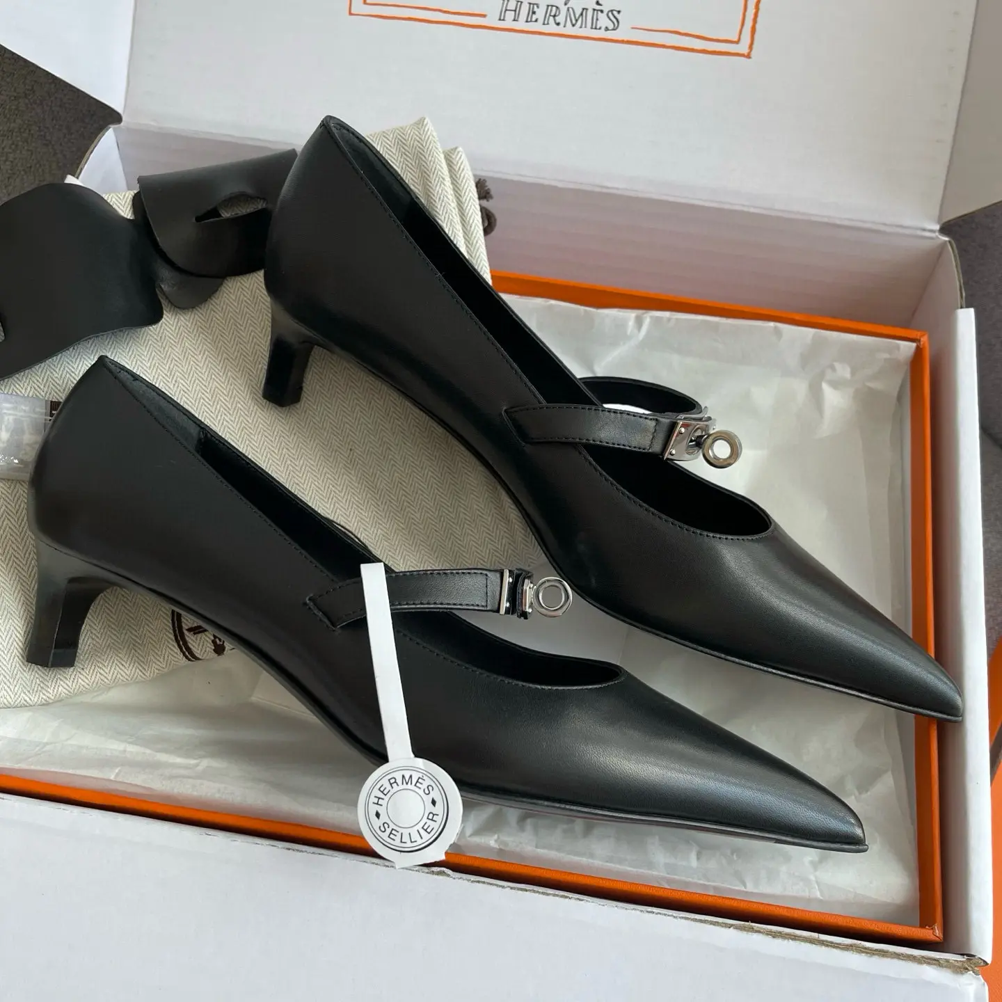 The Hermes 25SS Spring/Summer Kelly Buckle Pointed Cat Heel Shoes you described sound like a luxurious and versatile addition to any wardrobe. Here’s a refined breakdown of their features and styling potential: