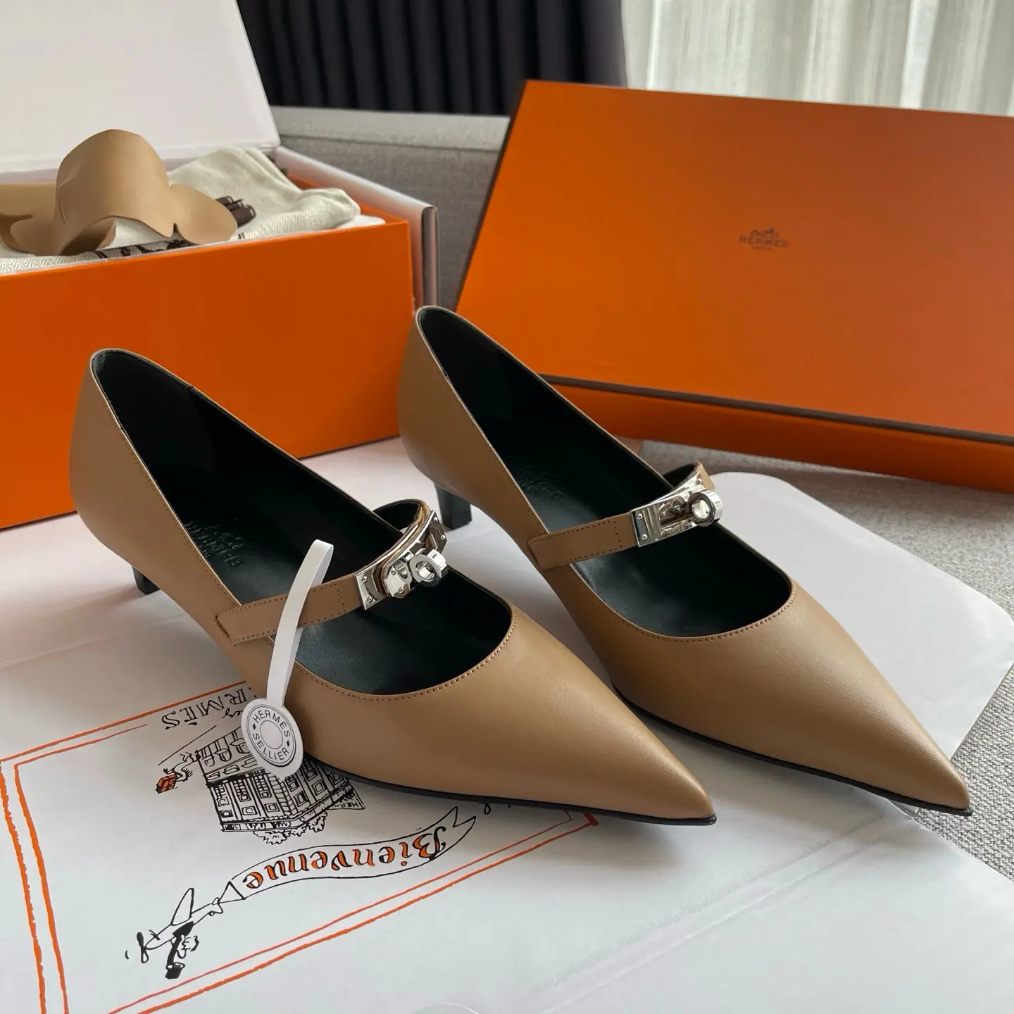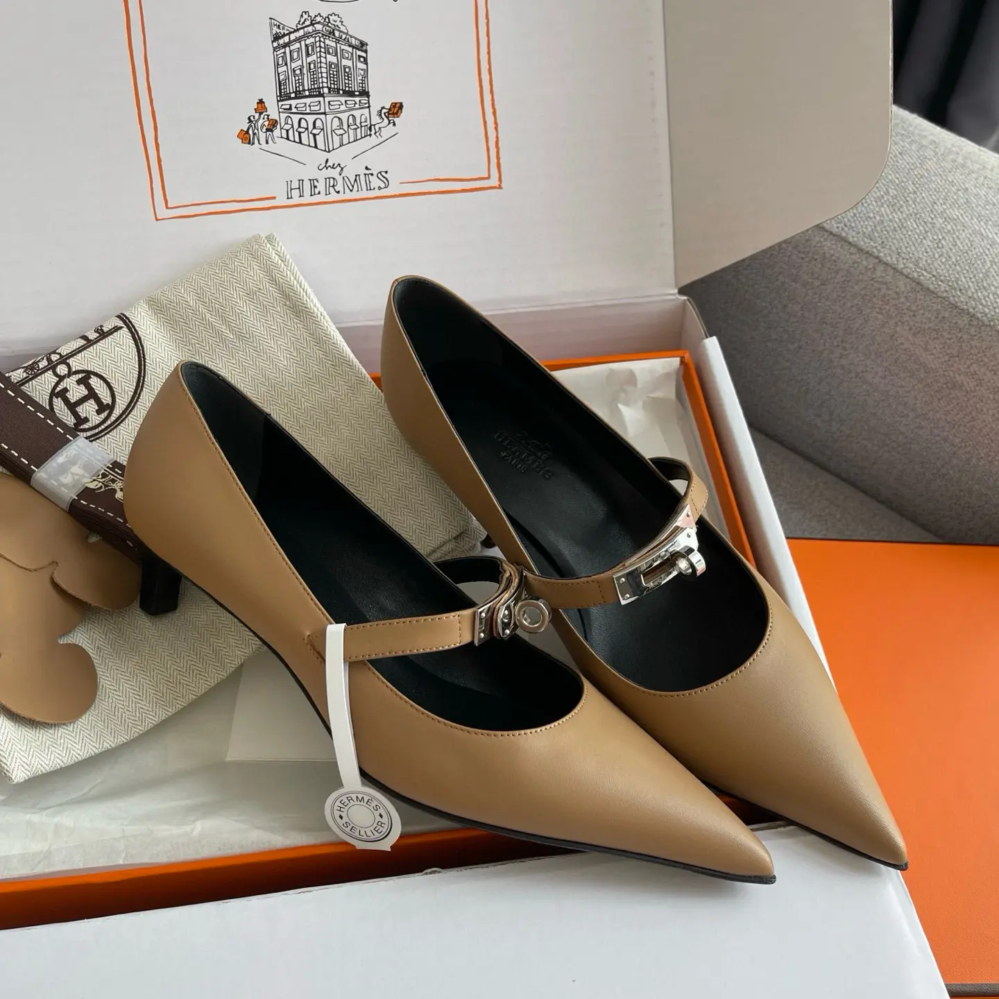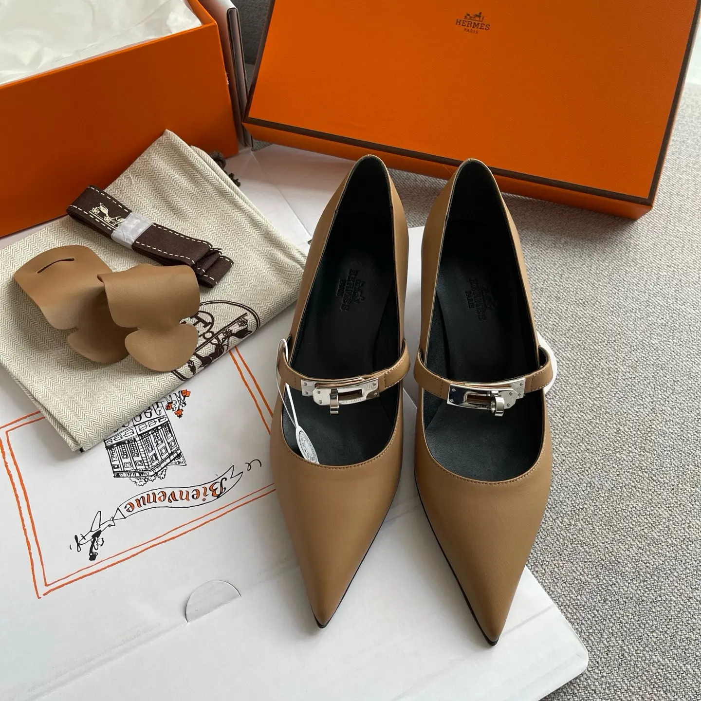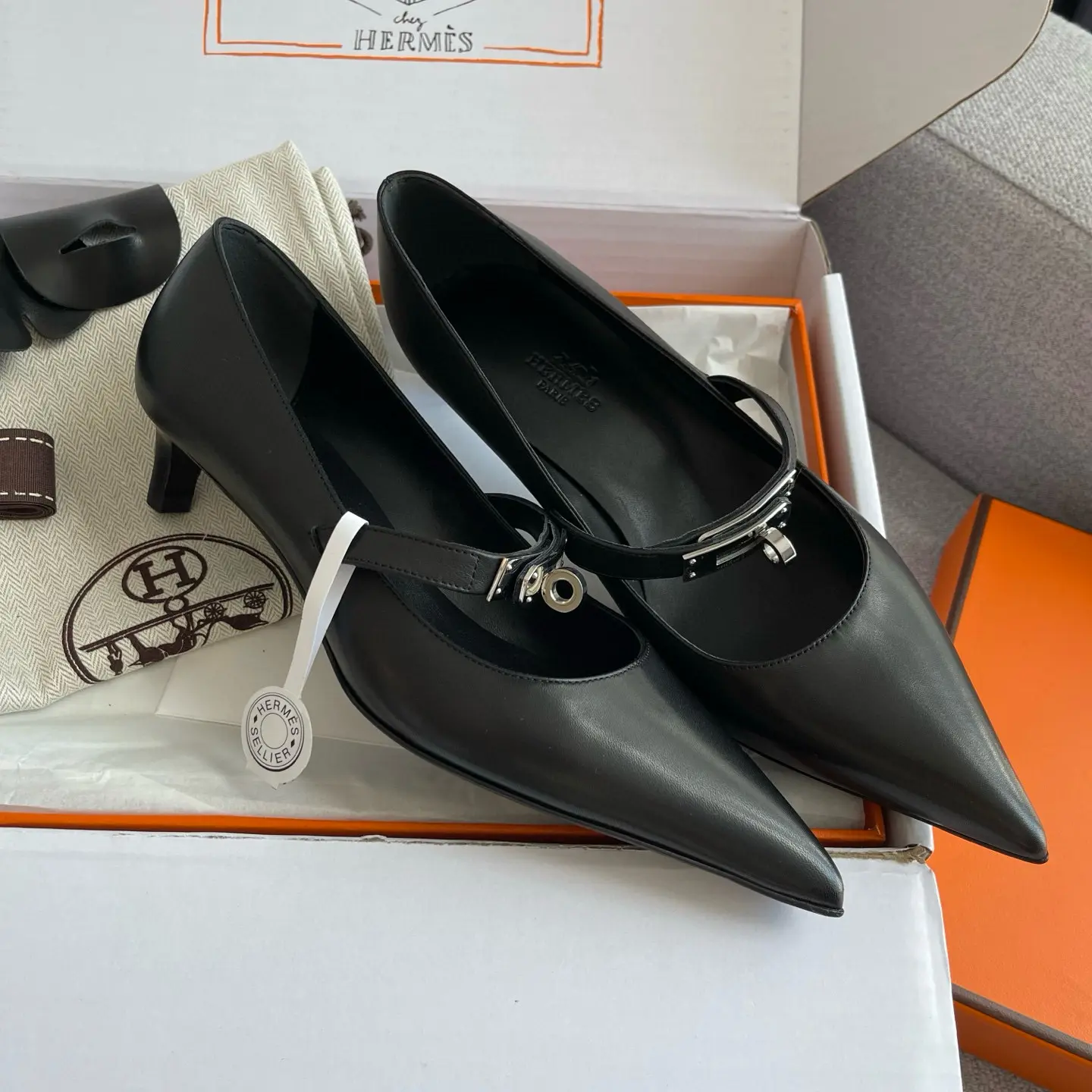 The Hermes 25SS Spring/Summer Kelly Buckle Pointed Cat Heel Shoes you described sound like a luxurious and versatile addition to any wardrobe. Here’s a refined breakdown of their features and styling potential: