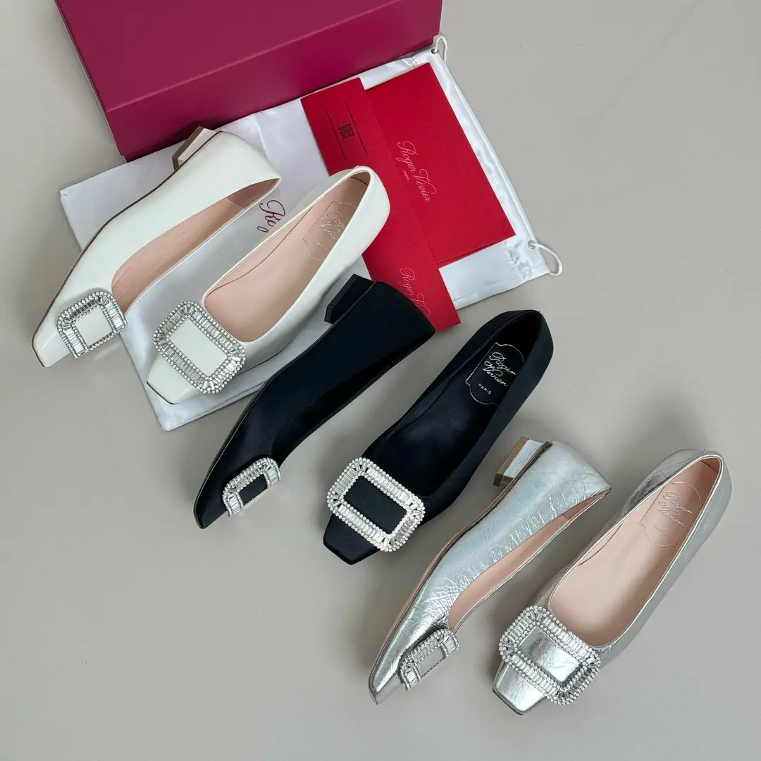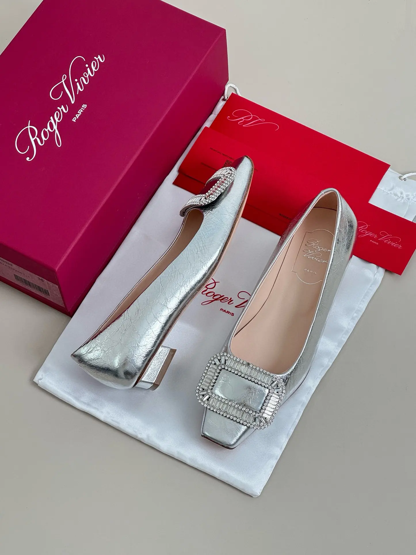 💎 Roger Vivier Limited-Edition RV Mid-Heel Diamond Buckle Shoes