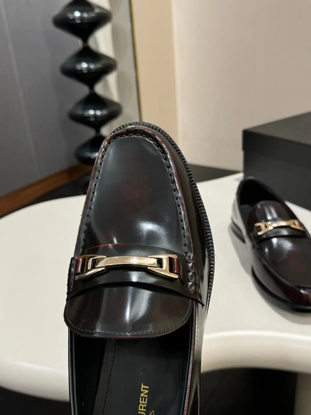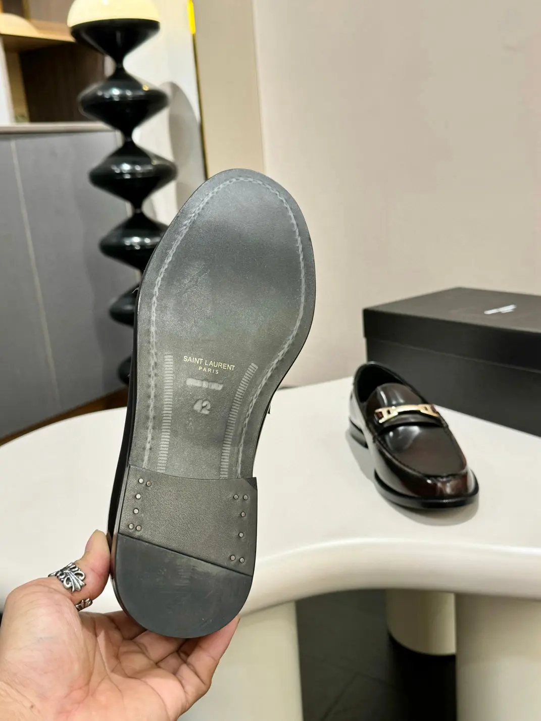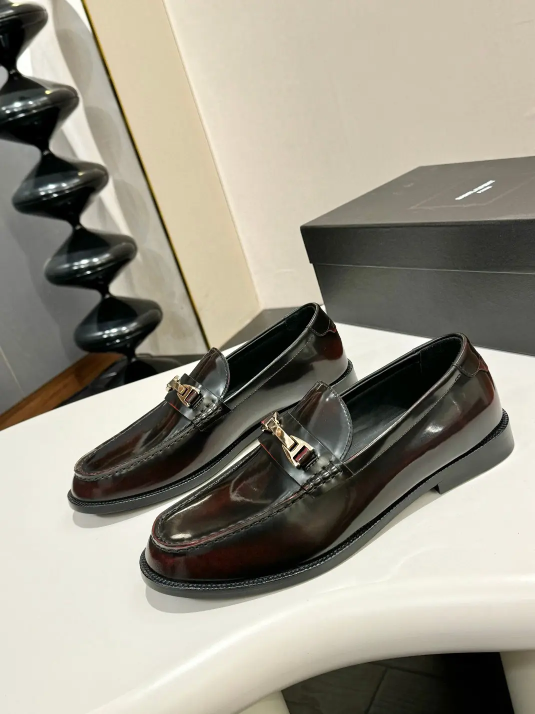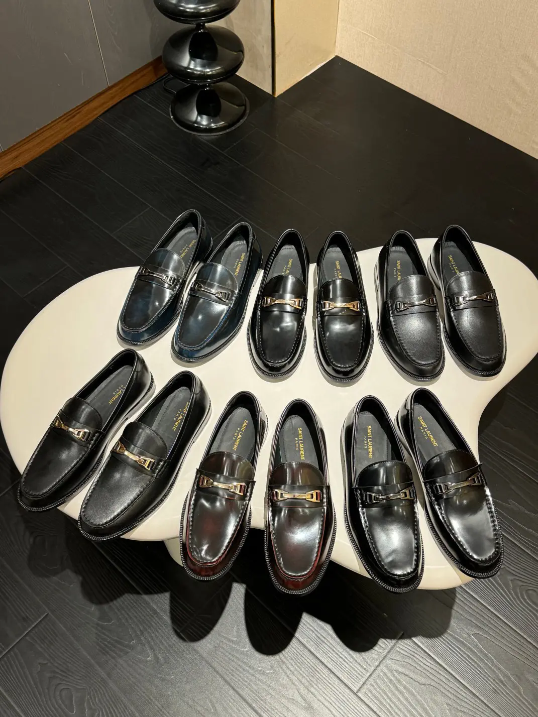 YSL—Saint Laurent men’s formal leather shoes, top-level replica, imported beaded cowhide leather, paired with imported hardware pendants, water-dyed cowhide leather breathable inner lining, original imported genuine leather sole, top quality! Number of codes: 39-44 (38.4546 customized)