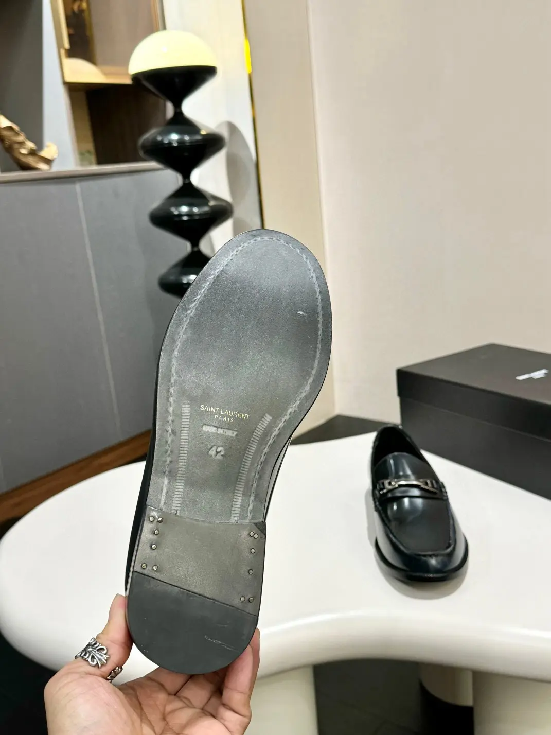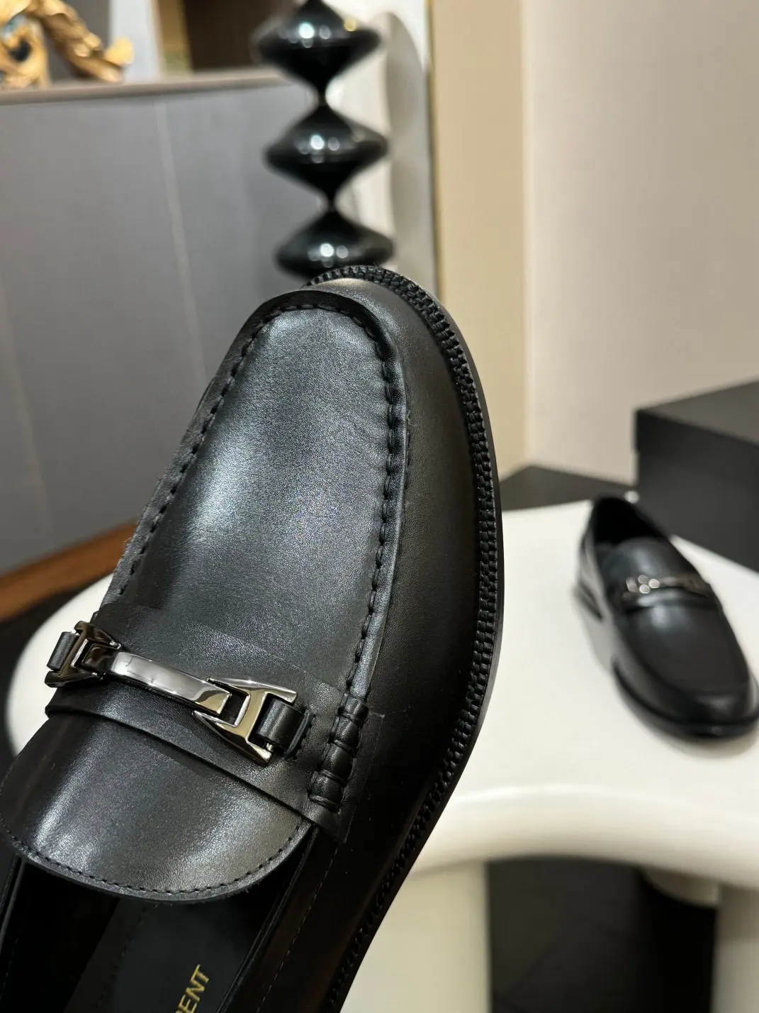 YSL—Saint Laurent men’s formal leather shoes, top-level replica, imported beaded cowhide leather, paired with imported hardware pendants, water-dyed cowhide leather breathable inner lining, original imported genuine leather sole, top quality! Number of codes: 39-44 (38.4546 customized)