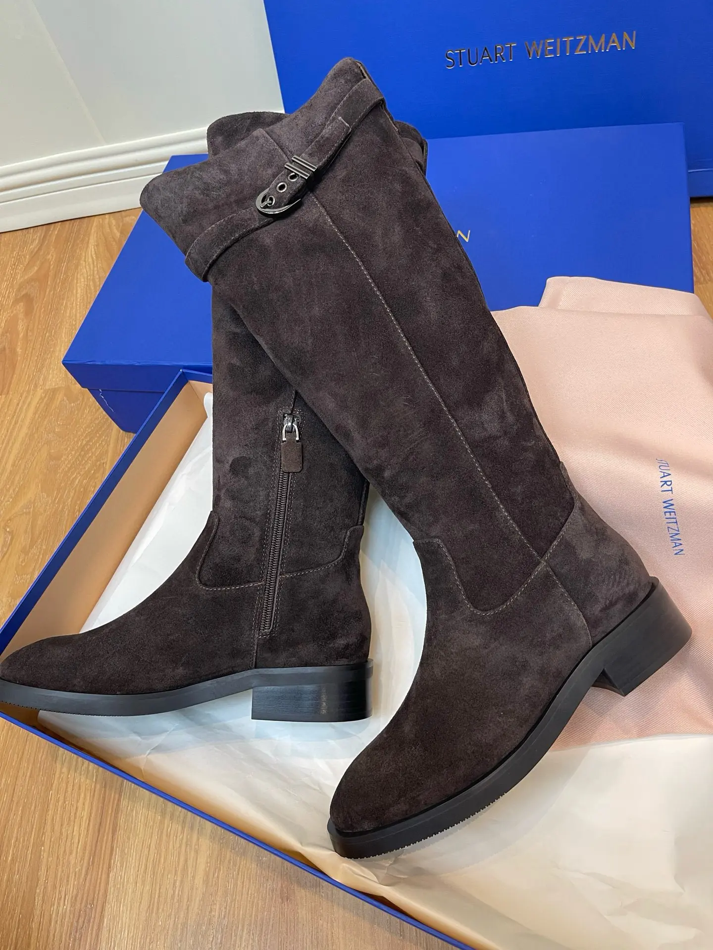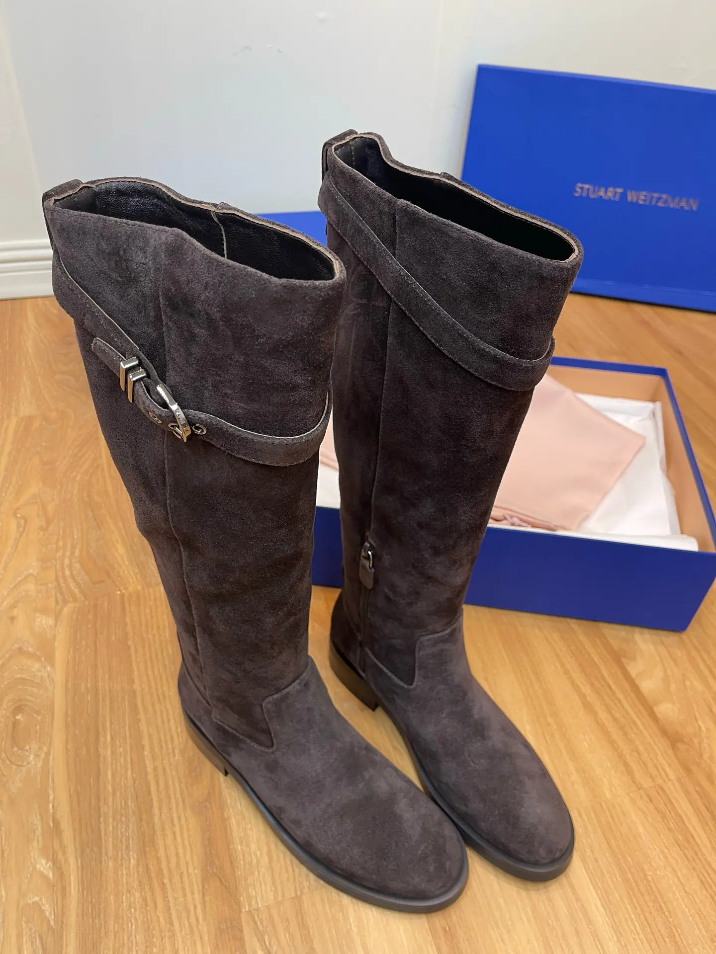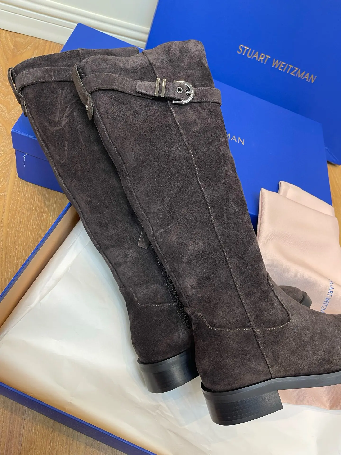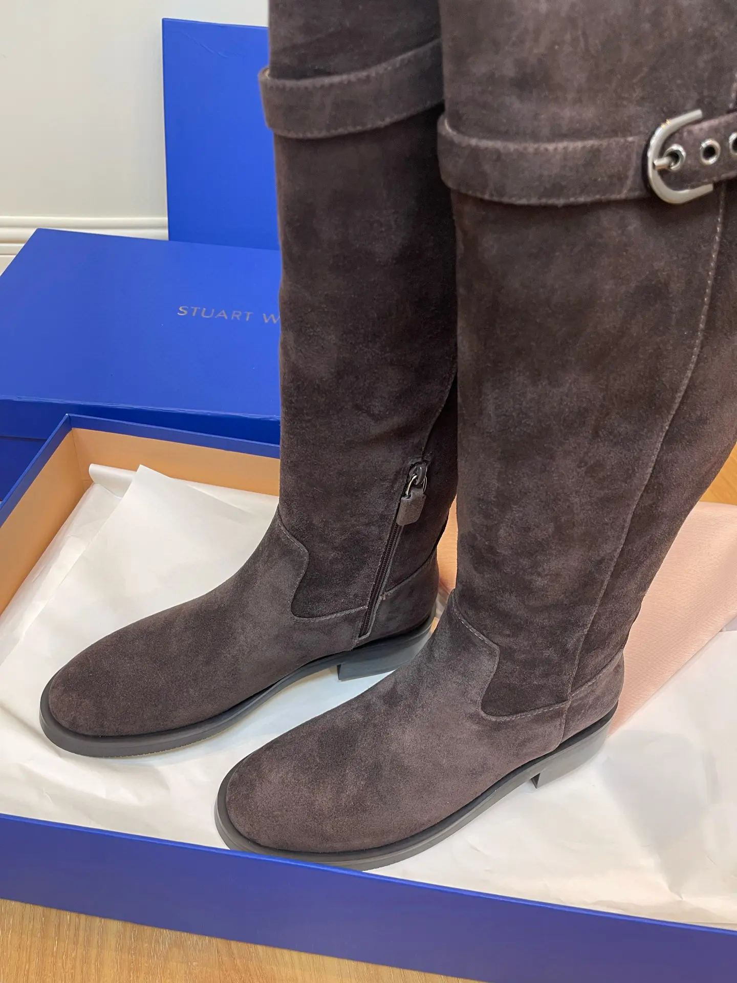 SW Maverick Knee-High Boot… These boots are incredibly flattering for the legs… slightly straight-legged, not tight around the calves, so they elongate the leg line! All leather is original factory stock… the fineness of the suede and the sheen of the leather look incredibly high-end… perfect for autumn/winter… and great value!