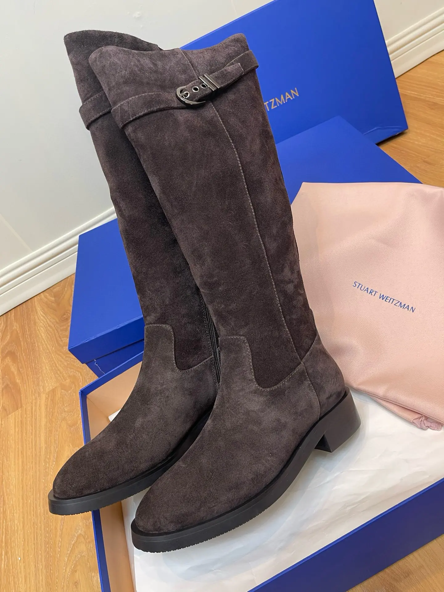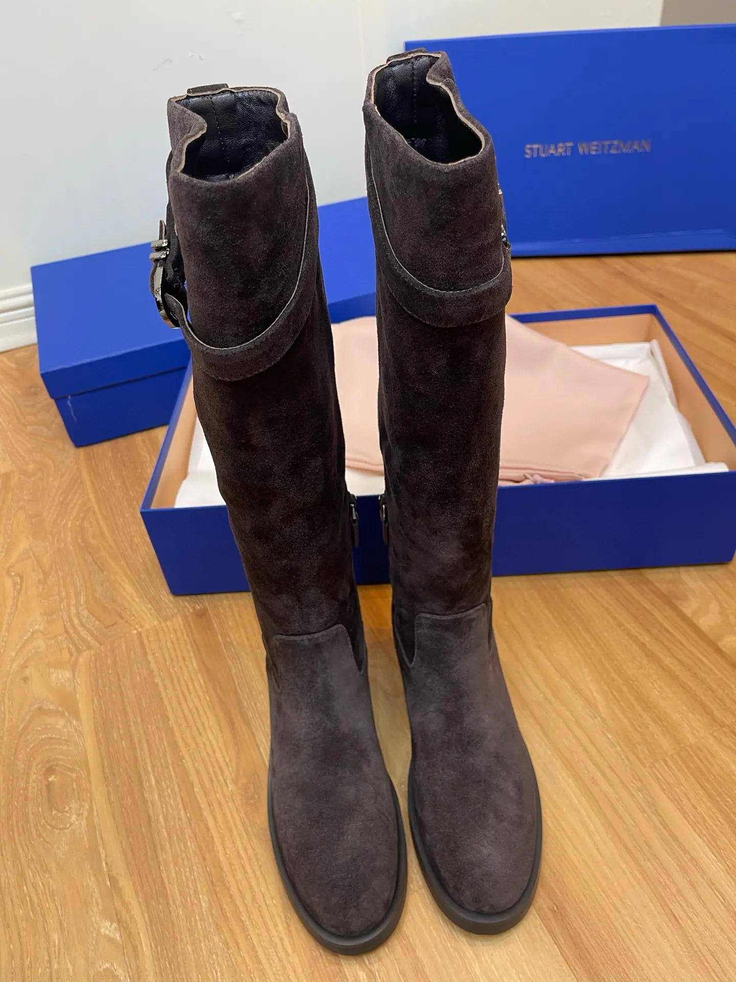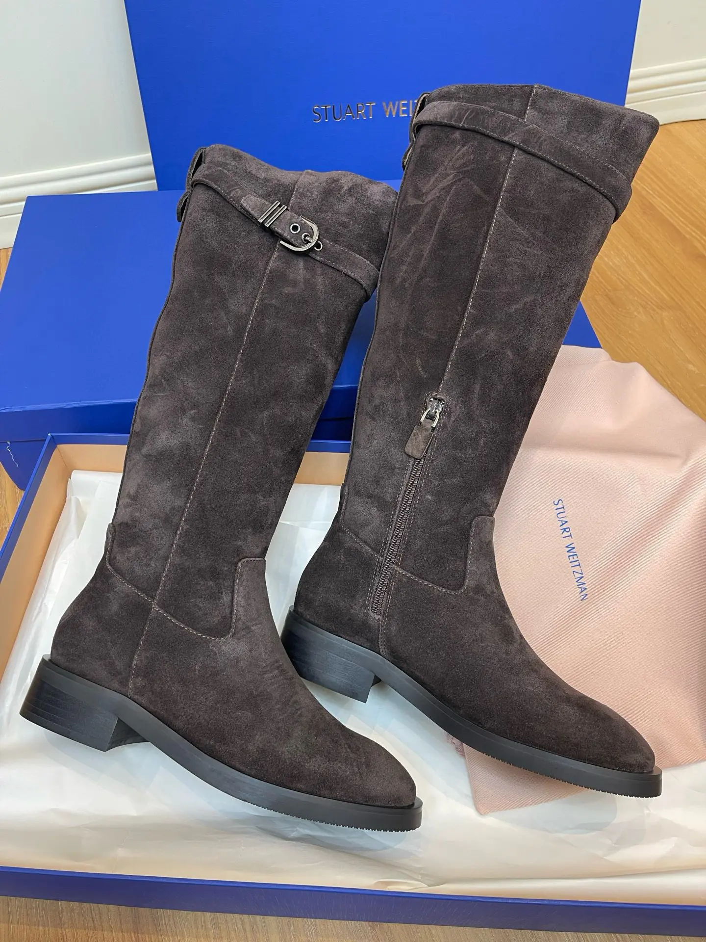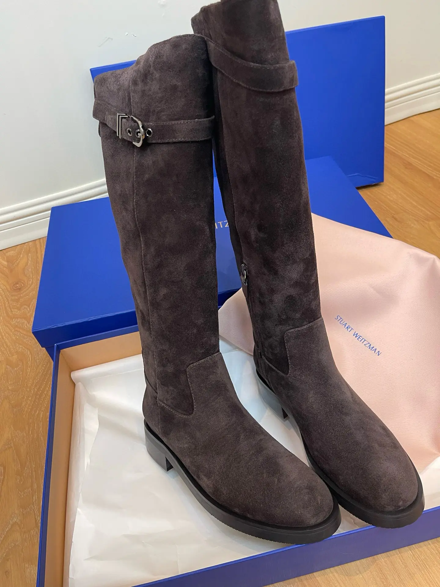 SW Maverick Knee-High Boot… These boots are incredibly flattering for the legs… slightly straight-legged, not tight around the calves, so they elongate the leg line! All leather is original factory stock… the fineness of the suede and the sheen of the leather look incredibly high-end… perfect for autumn/winter… and great value!