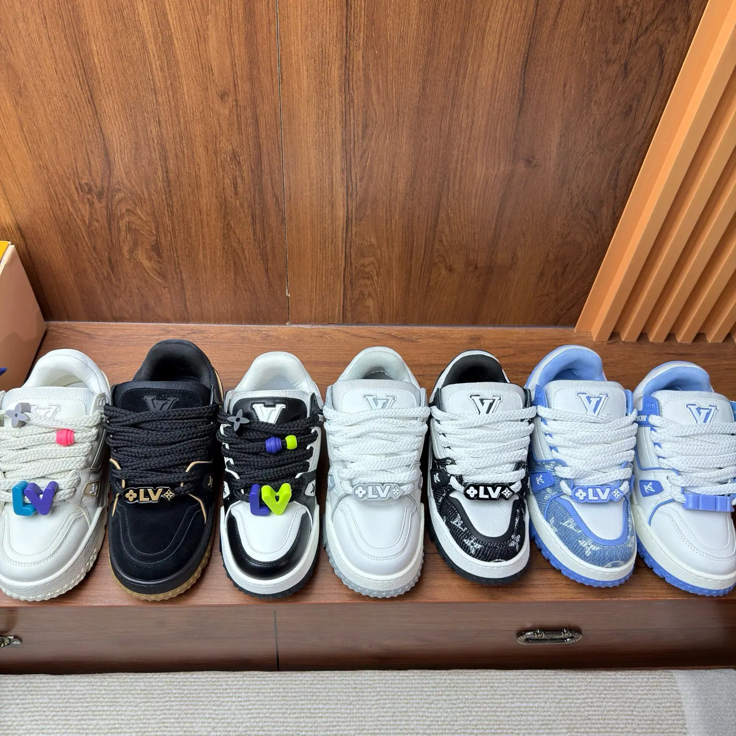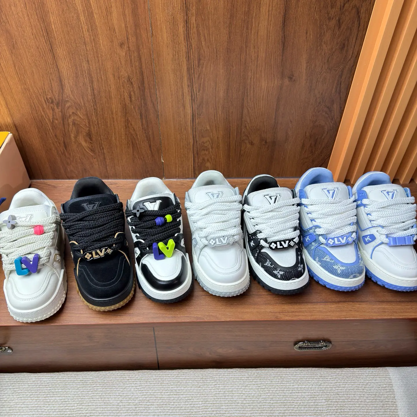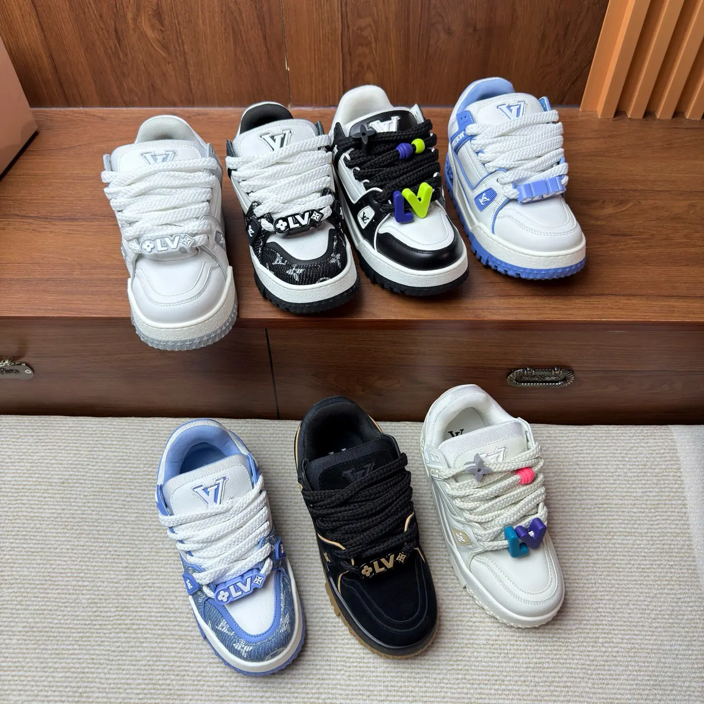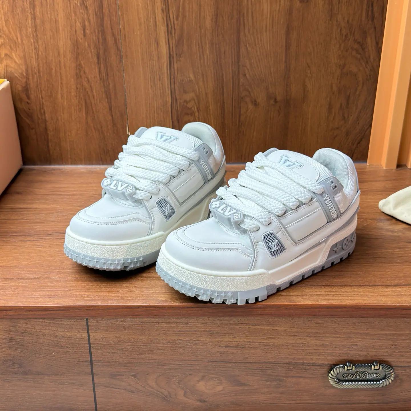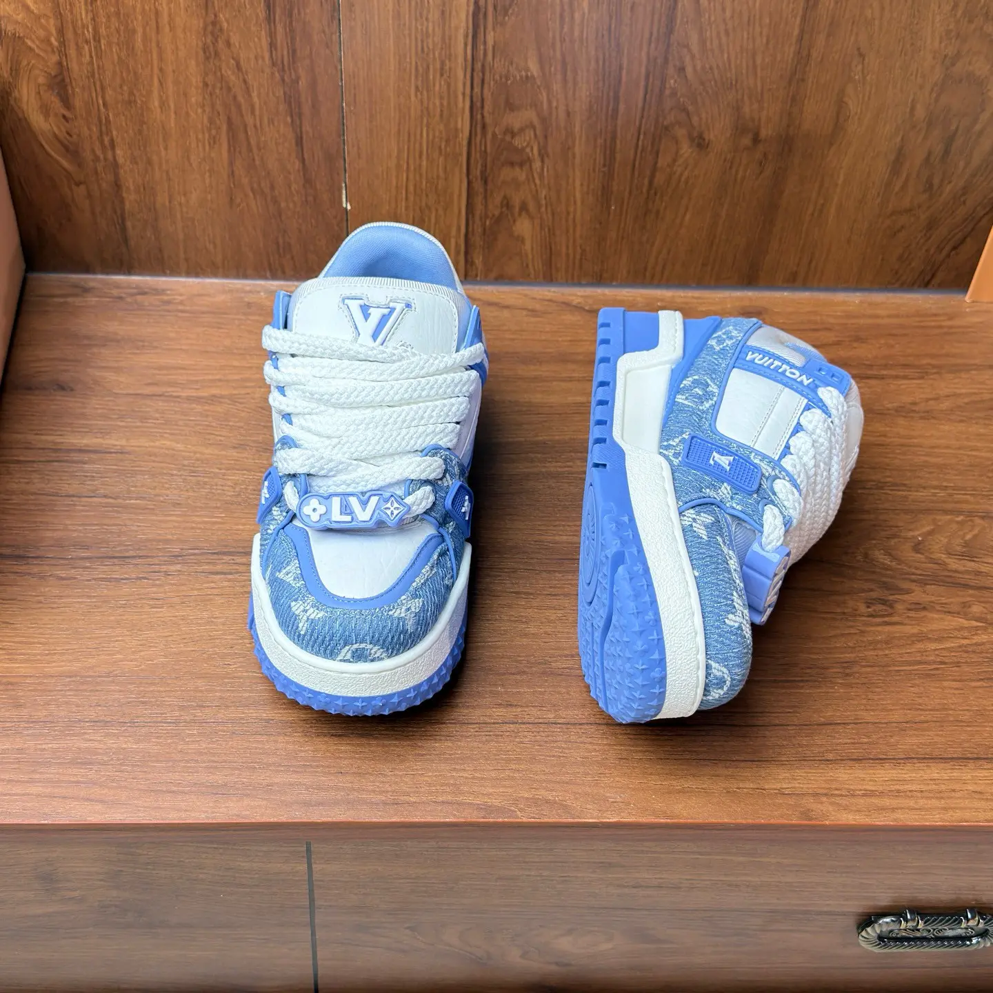 Model: Replica of the Louis Vuitton LV Trainer Maxi (platform version).