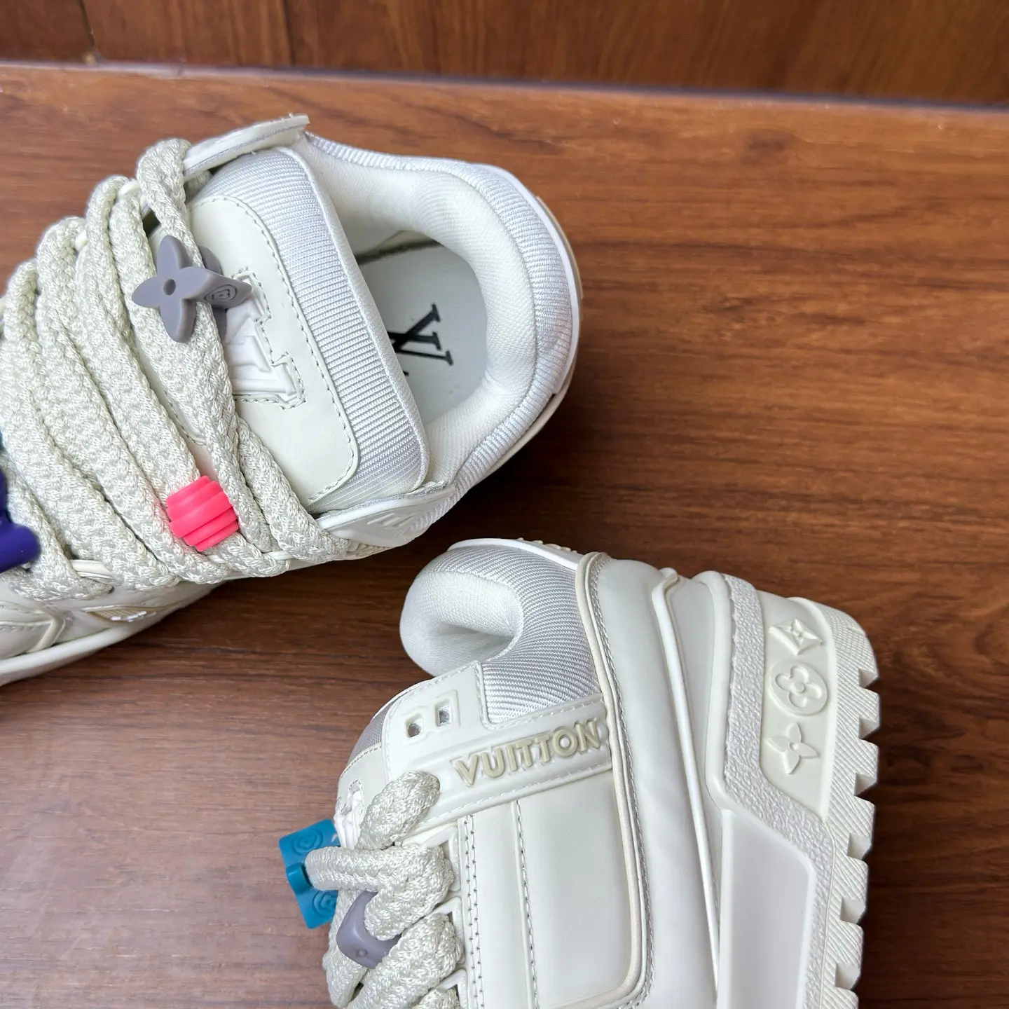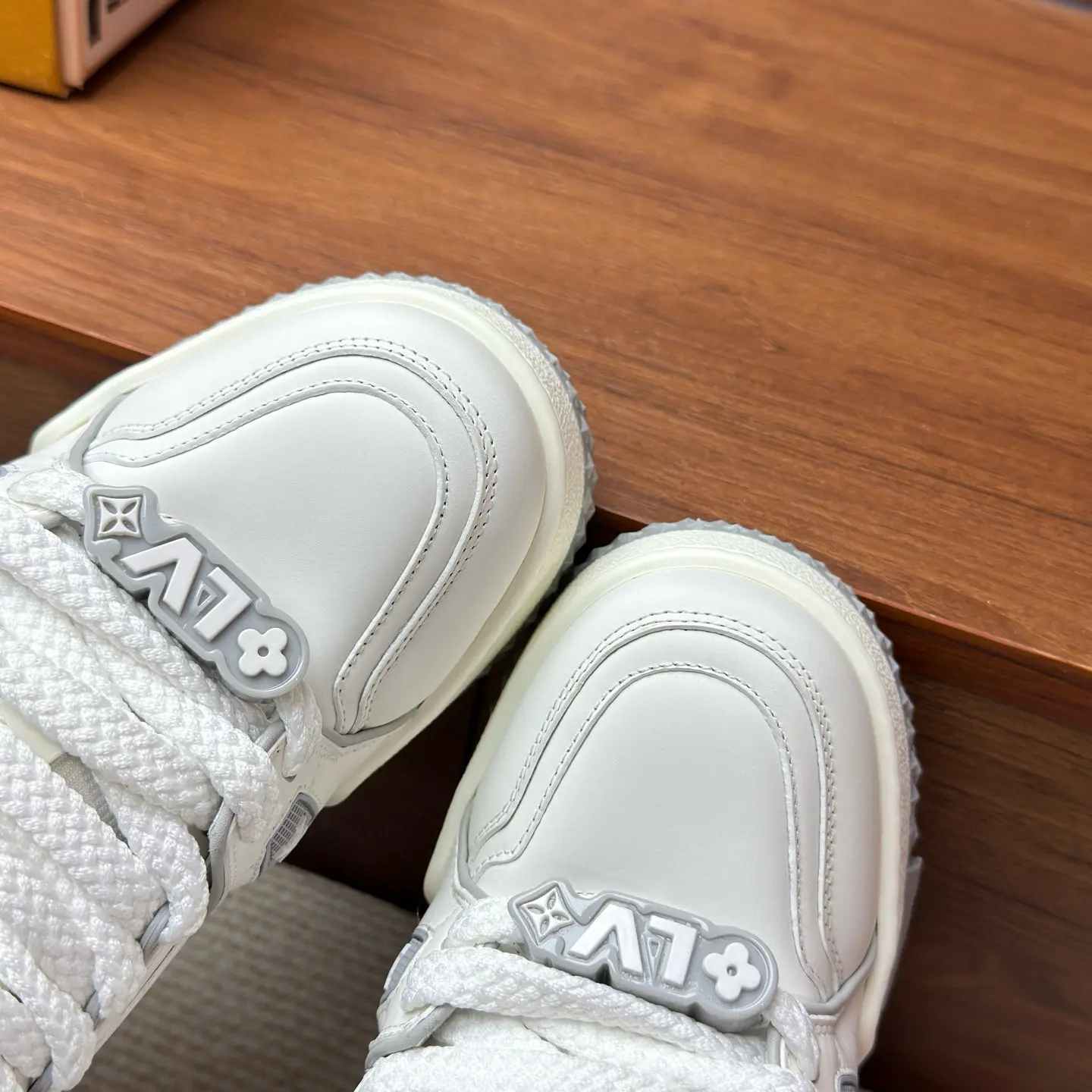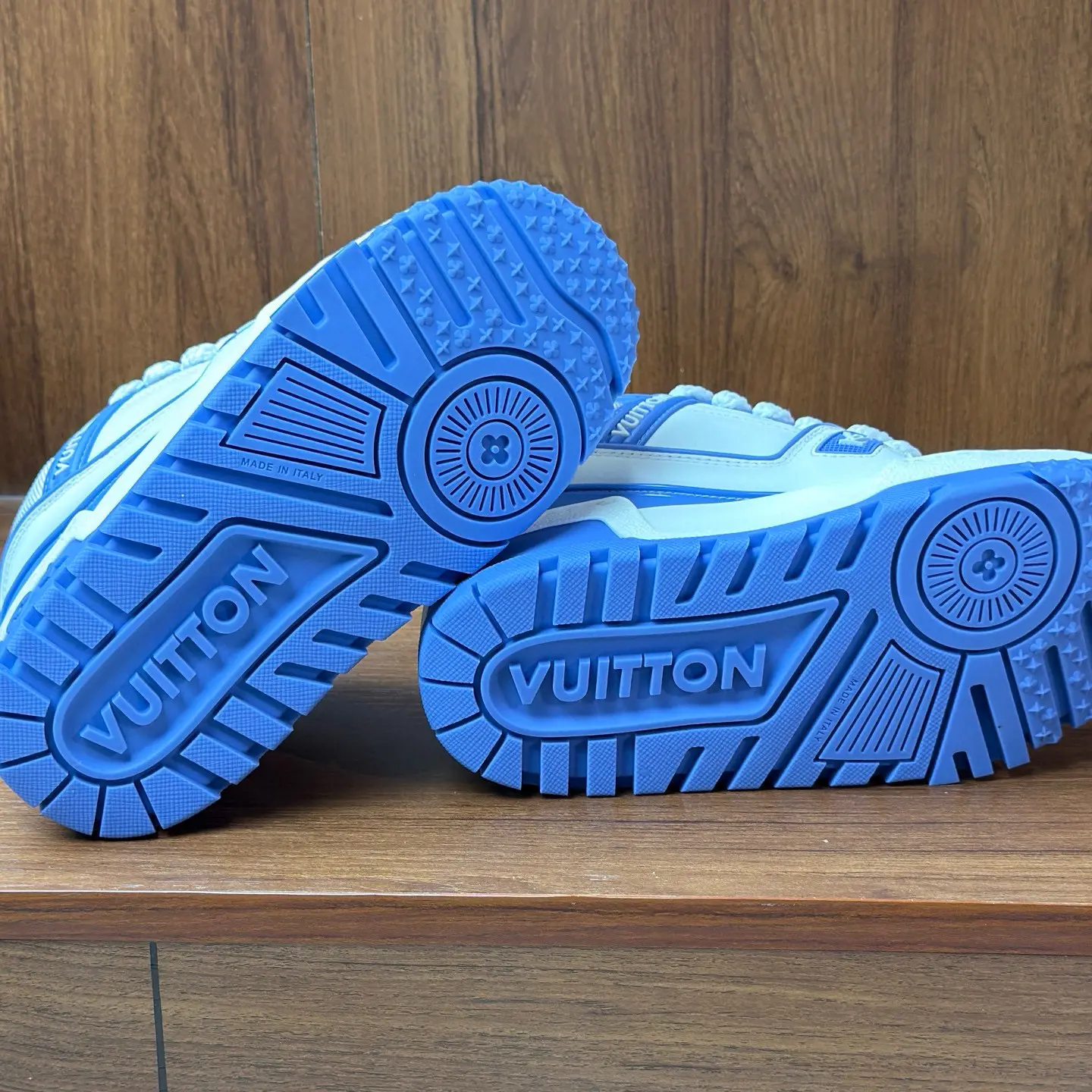“Composite outsole doesn’t have flashy branding” | The bottom of the sole is not covered in obvious logos, which is accurate to the authentic LV Trainer design. |