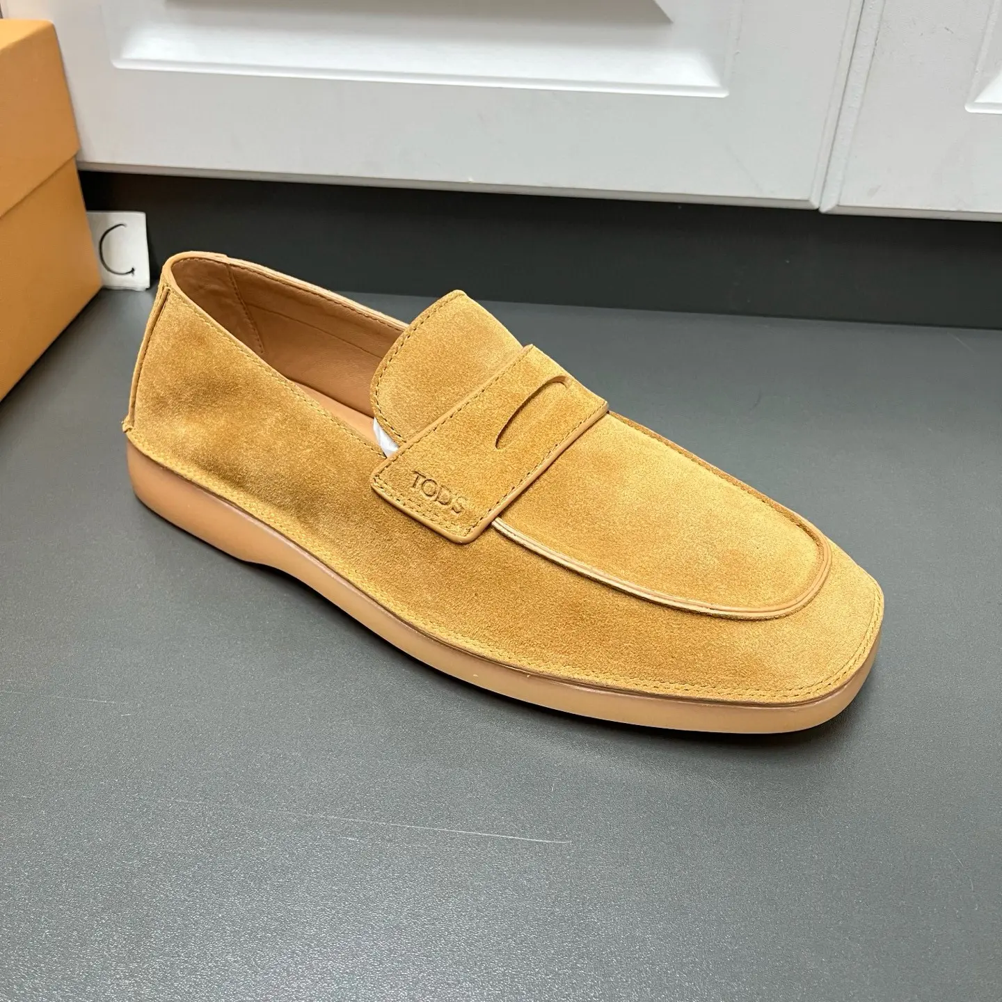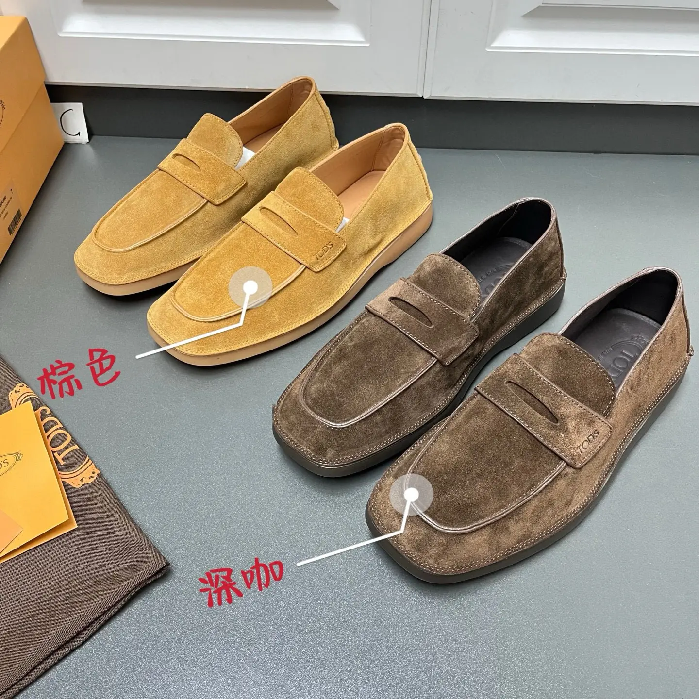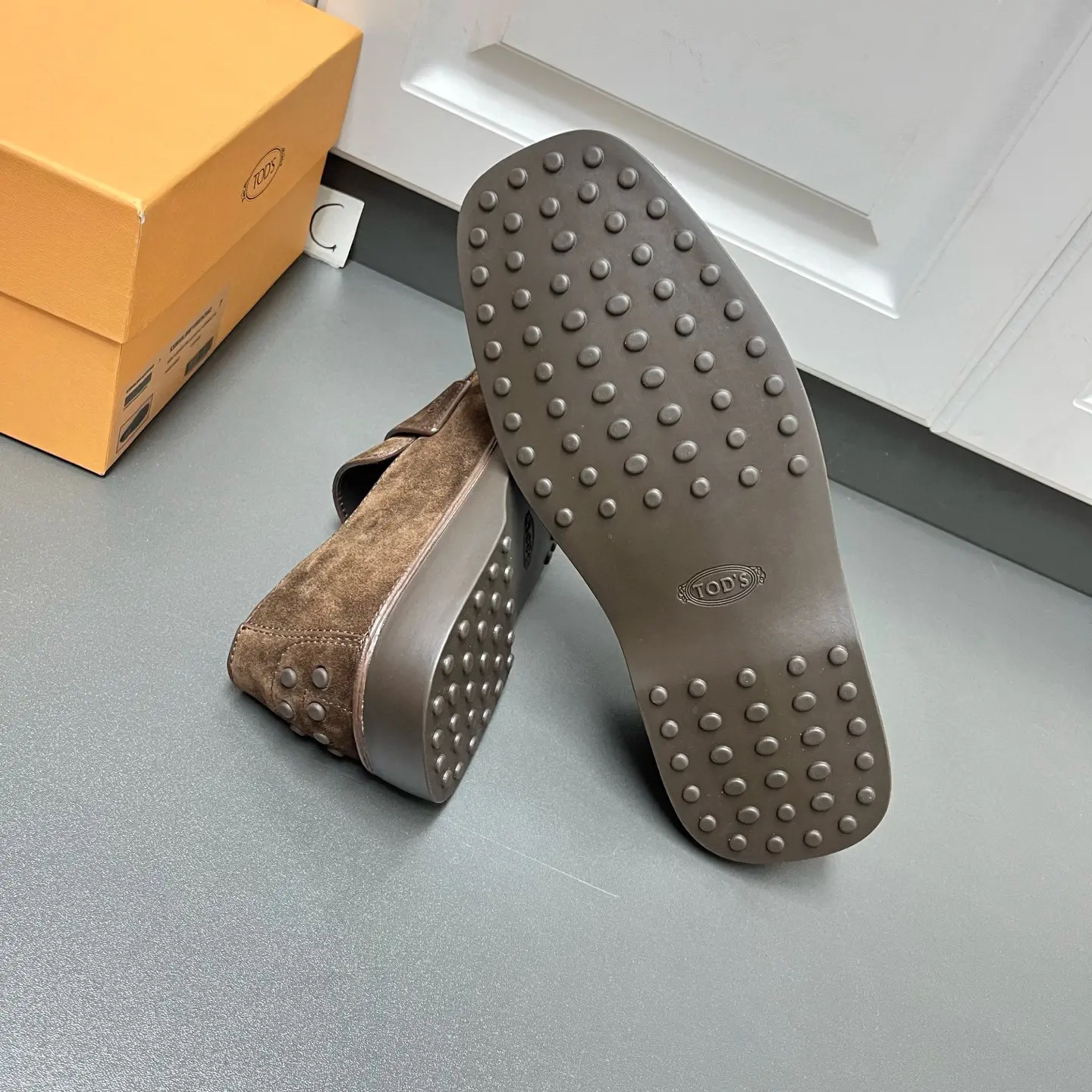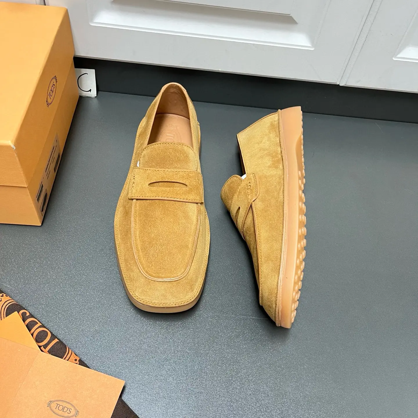This model has a natural cutting effect on the edges, giving you the softness and comfort of leather itself both on the feet and visually! The upper is made of suede cowhide leather, with classic loafers stripes on the front and TOD letter prints on the sides. The inner lining is benzene-dyed calfskin, which absorbs sweat and prevents foot odor. The heel and rubber sole are decorated with rubber peas, which are non-slip, wear-resistant and shock-absorbing. The foot feels soft and comfortable, and the appearance is simple and advanced. Whether it is paired with suit pants for a business style or with casual pants to create a casual feeling, there is no pressure and it is suitable for all occasions.