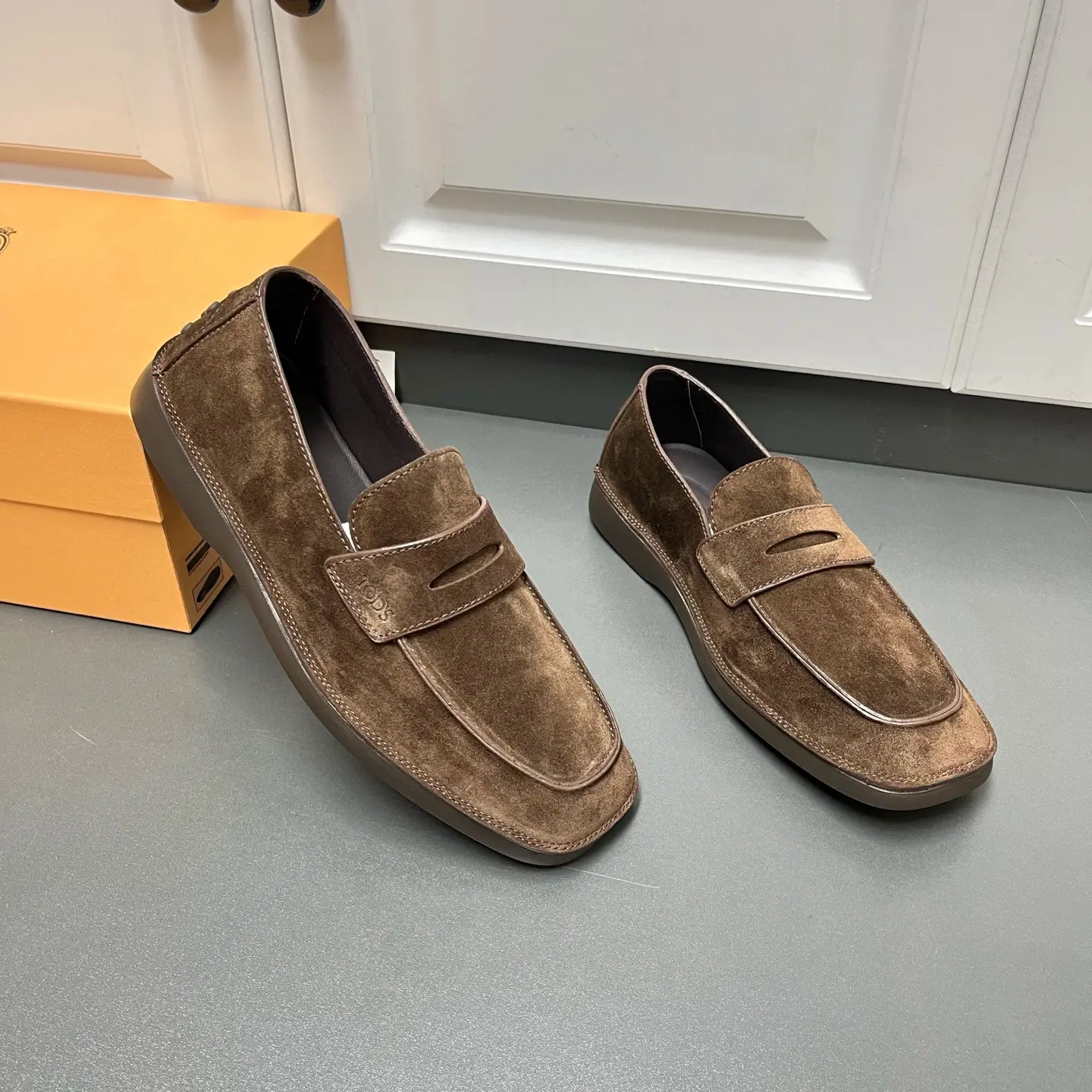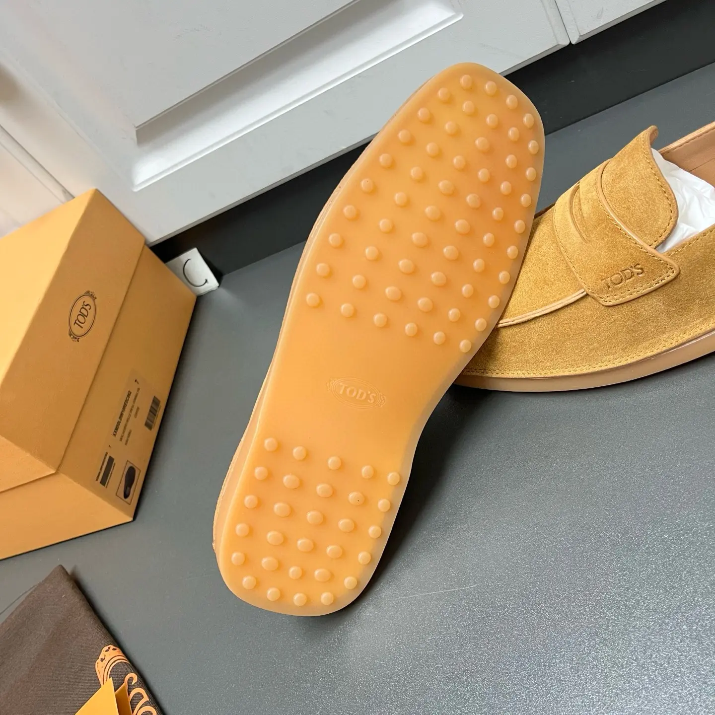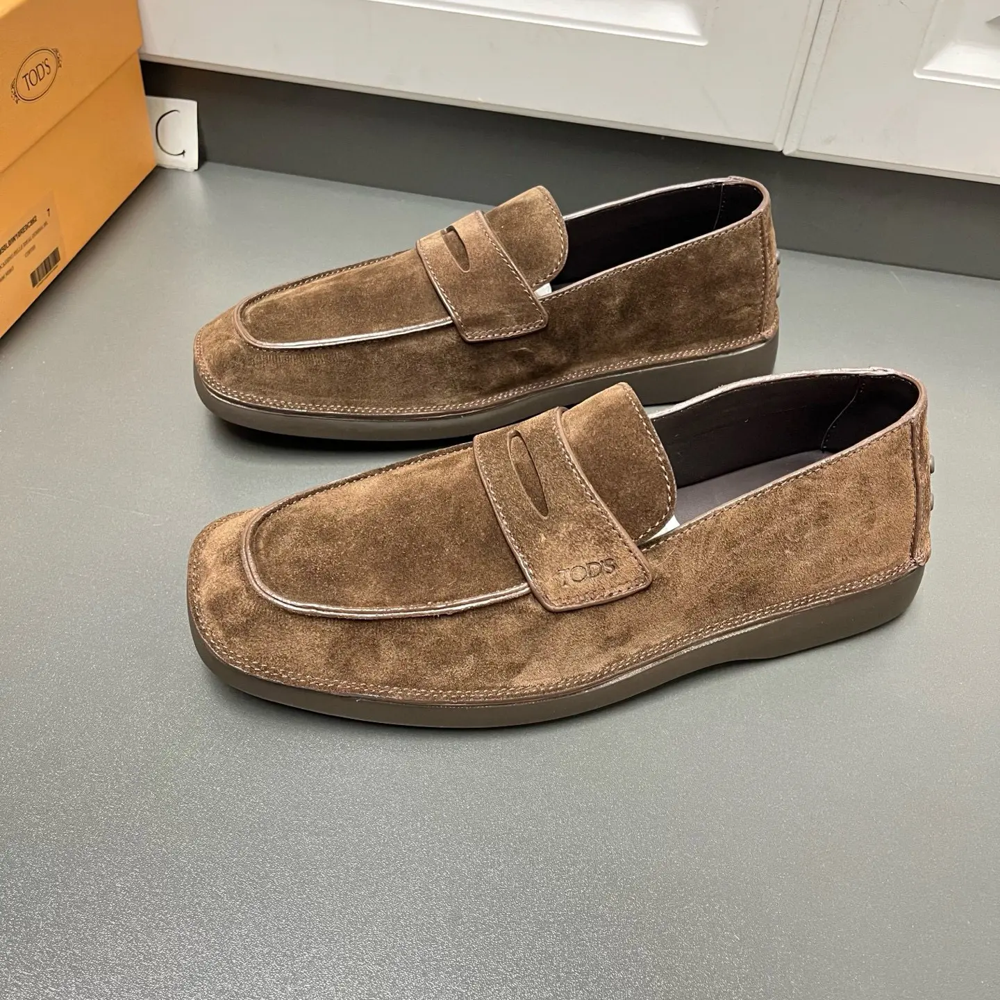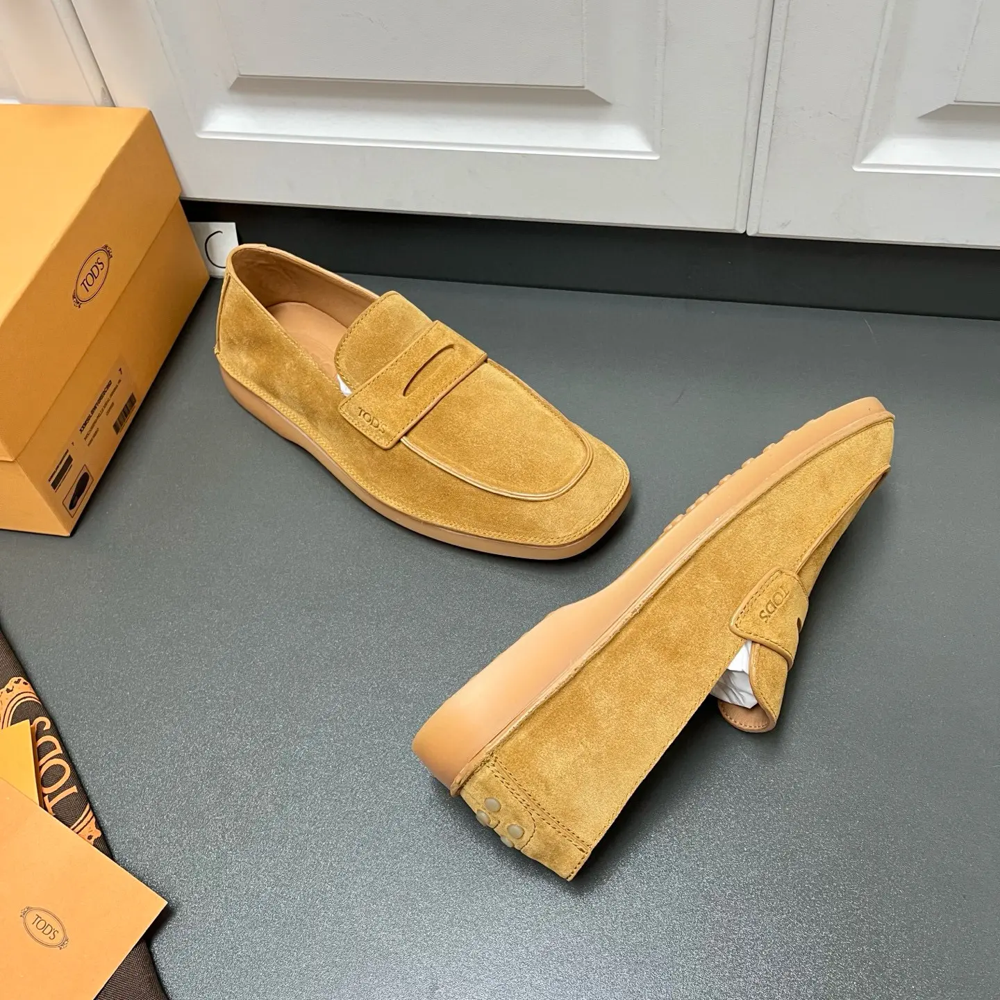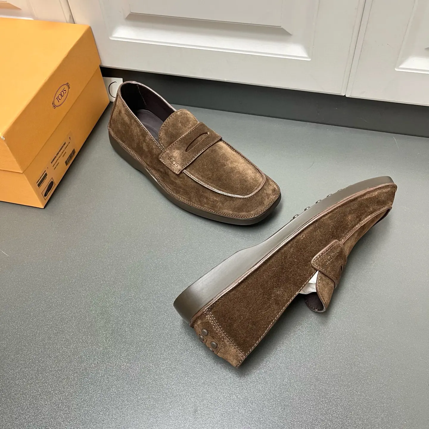 This model has a natural cutting effect on the edges, giving you the softness and comfort of leather itself both on the feet and visually! The upper is made of suede cowhide leather, with classic loafers stripes on the front and TOD letter prints on the sides. The inner lining is benzene-dyed calfskin, which absorbs sweat and prevents foot odor. The heel and rubber sole are decorated with rubber peas, which are non-slip, wear-resistant and shock-absorbing. The foot feels soft and comfortable, and the appearance is simple and advanced. Whether it is paired with suit pants for a business style or with casual pants to create a casual feeling, there is no pressure and it is suitable for all occasions.
