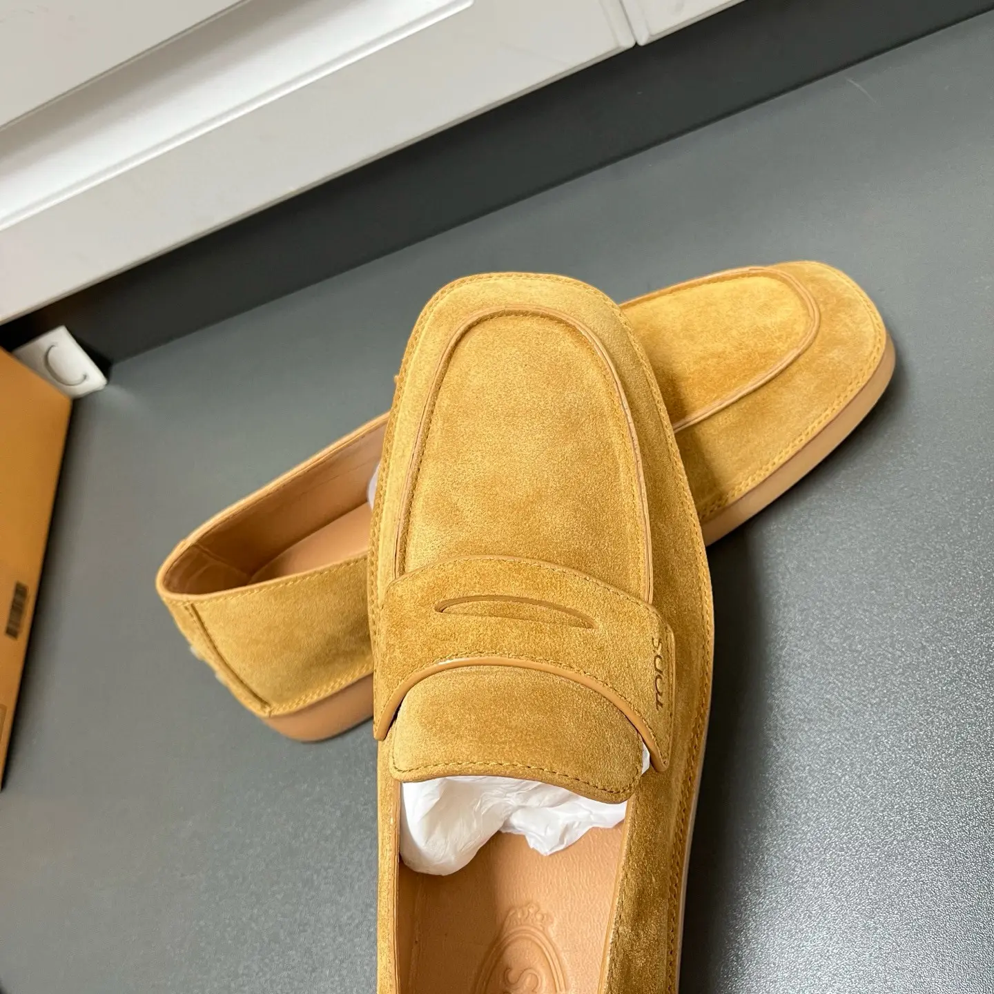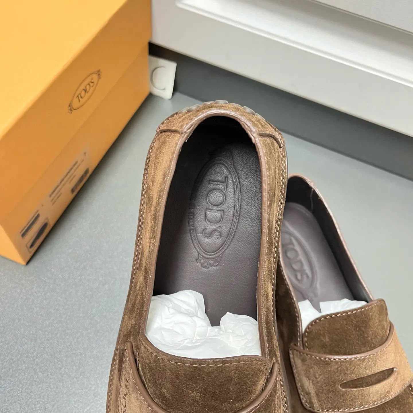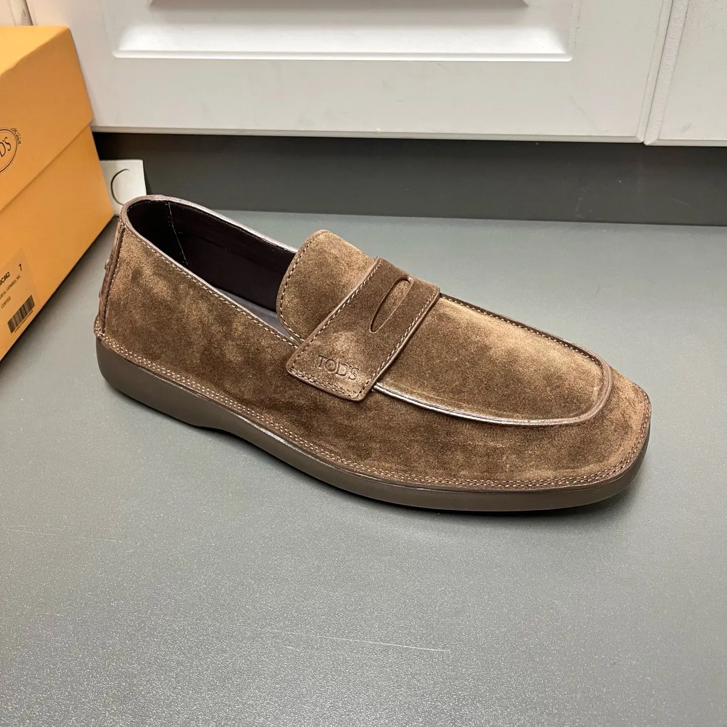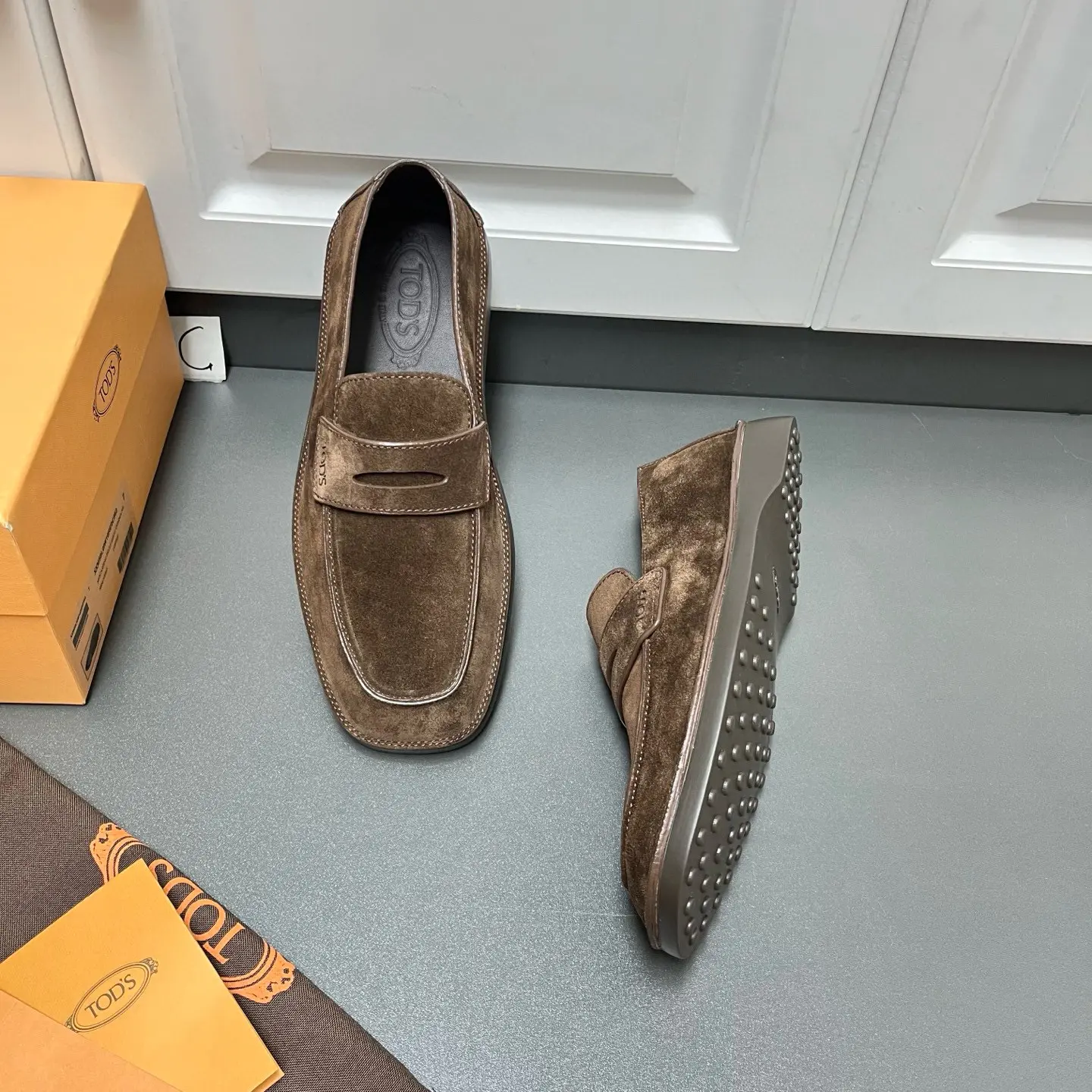 This model has a natural cutting effect on the edges, giving you the softness and comfort of leather itself both on the feet and visually! The upper is made of suede cowhide leather, with classic loafers stripes on the front and TOD letter prints on the sides. The inner lining is benzene-dyed calfskin, which absorbs sweat and prevents foot odor. The heel and rubber sole are decorated with rubber peas, which are non-slip, wear-resistant and shock-absorbing. The foot feels soft and comfortable, and the appearance is simple and advanced. Whether it is paired with suit pants for a business style or with casual pants to create a casual feeling, there is no pressure and it is suitable for all occasions.