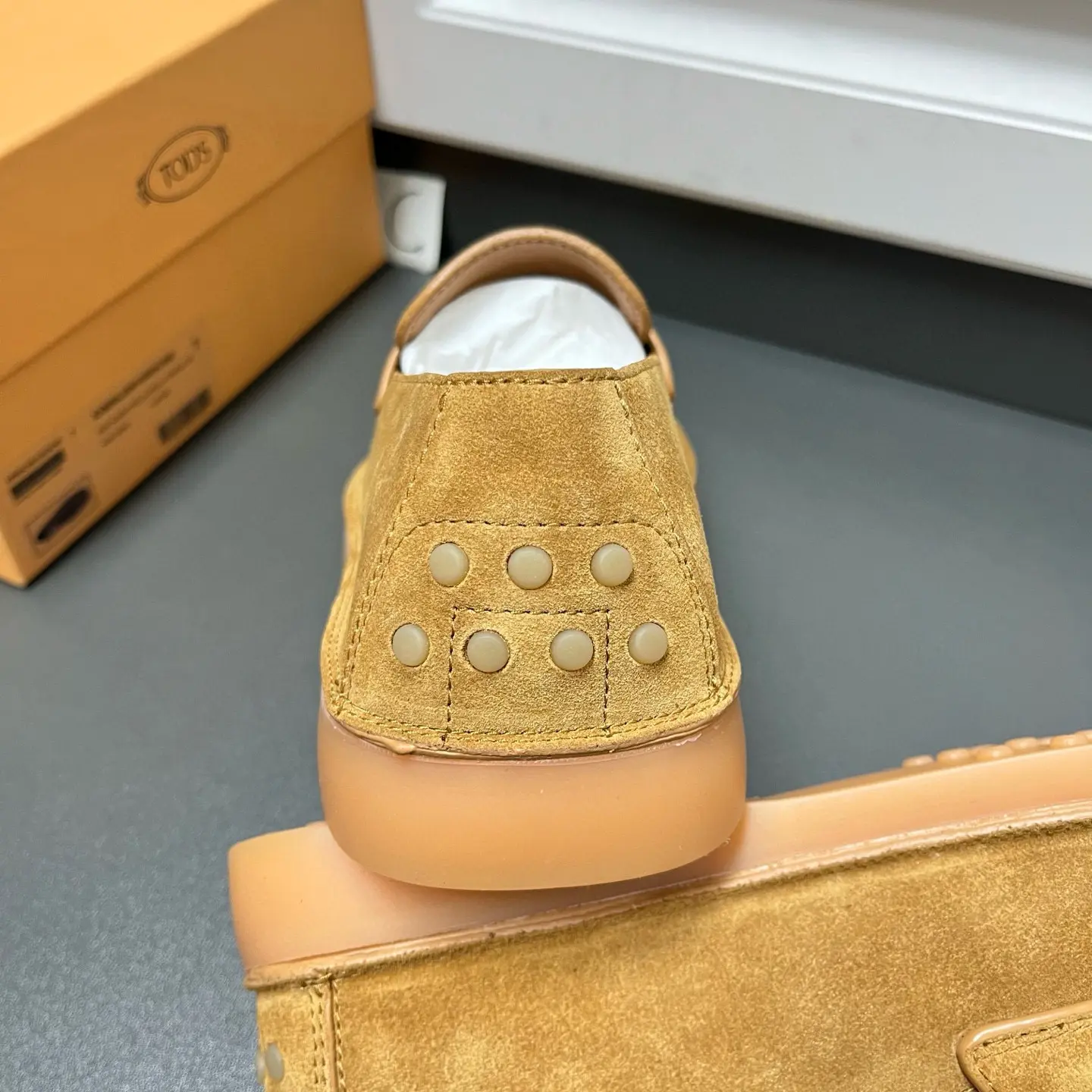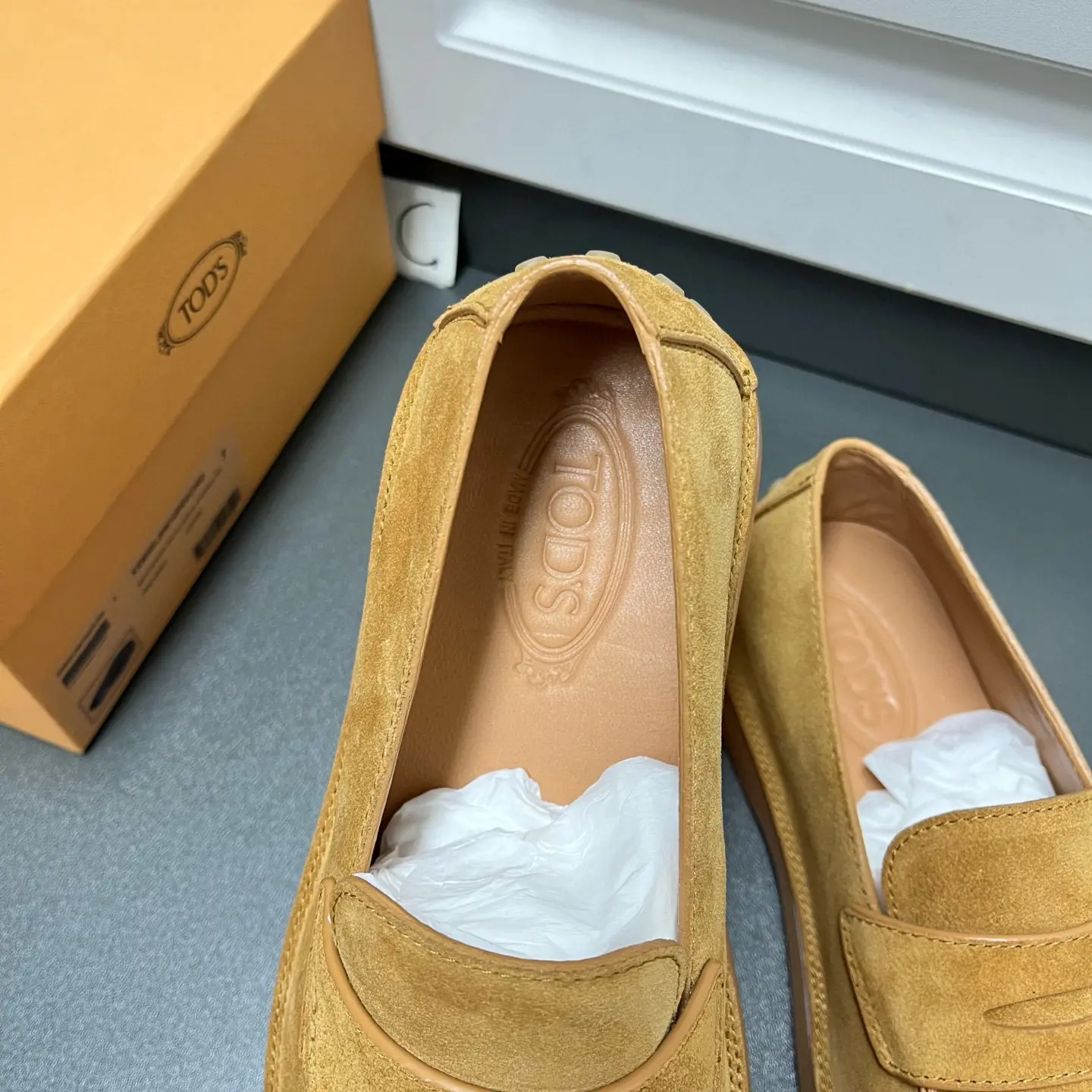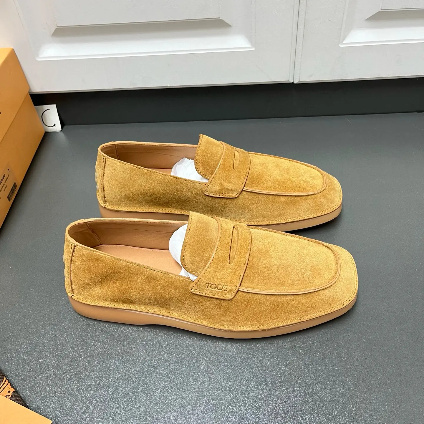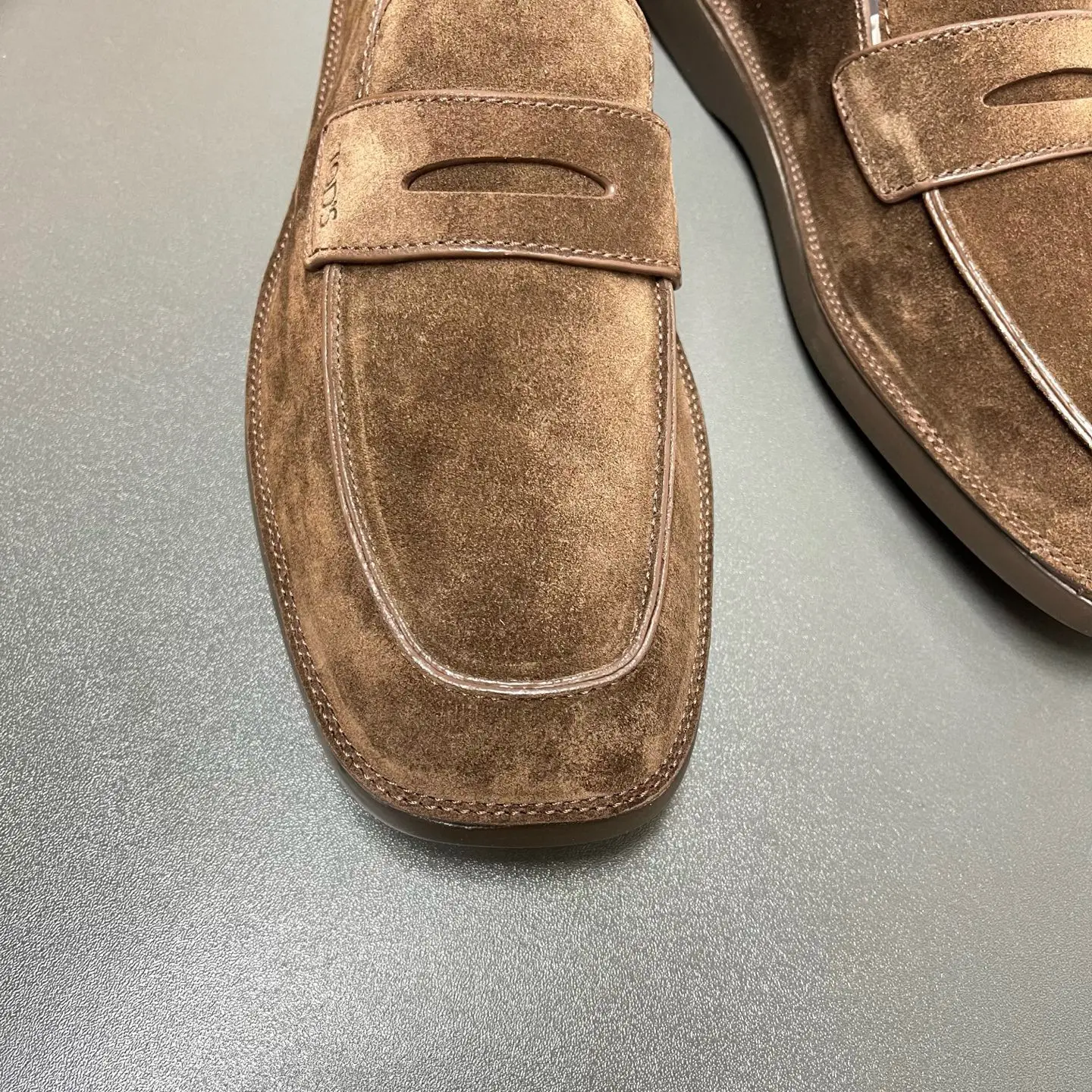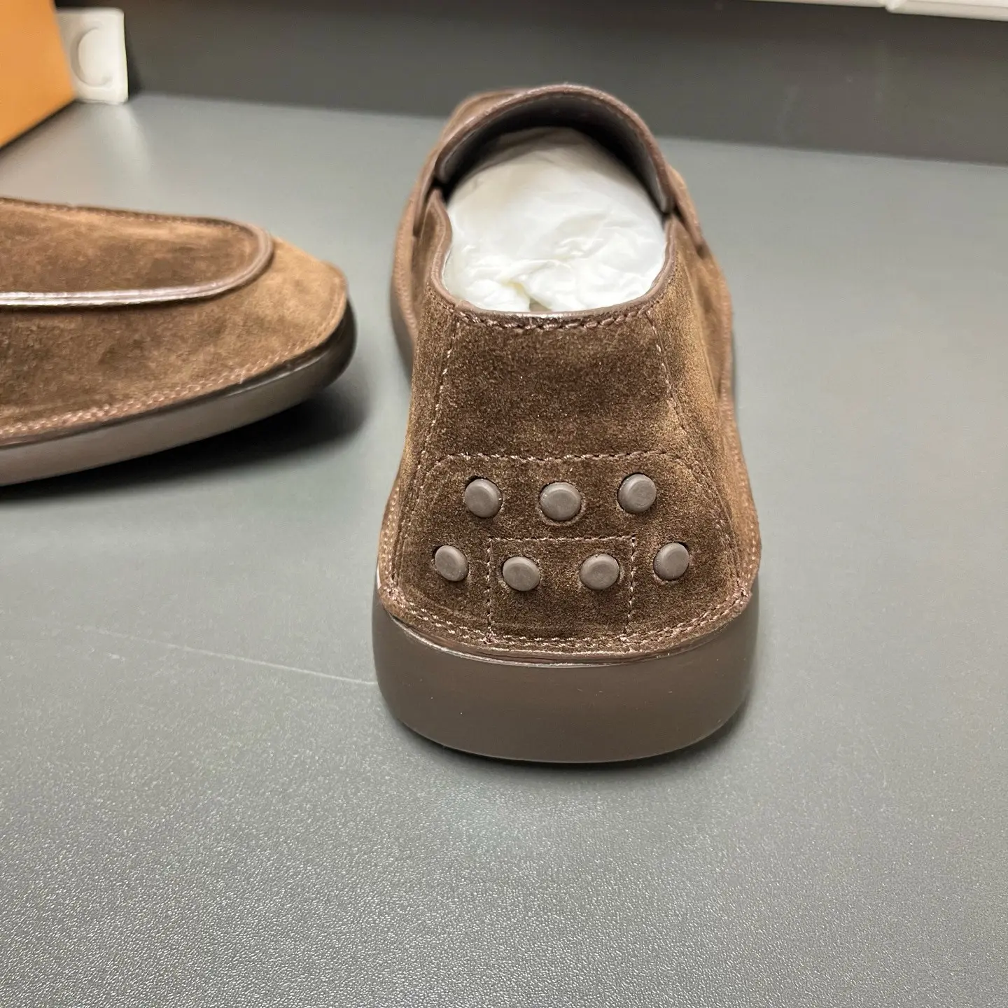 This model has a natural cutting effect on the edges, giving you the softness and comfort of leather itself both on the feet and visually! The upper is made of suede cowhide leather, with classic loafers stripes on the front and TOD letter prints on the sides. The inner lining is benzene-dyed calfskin, which absorbs sweat and prevents foot odor. The heel and rubber sole are decorated with rubber peas, which are non-slip, wear-resistant and shock-absorbing. The foot feels soft and comfortable, and the appearance is simple and advanced. Whether it is paired with suit pants for a business style or with casual pants to create a casual feeling, there is no pressure and it is suitable for all occasions.