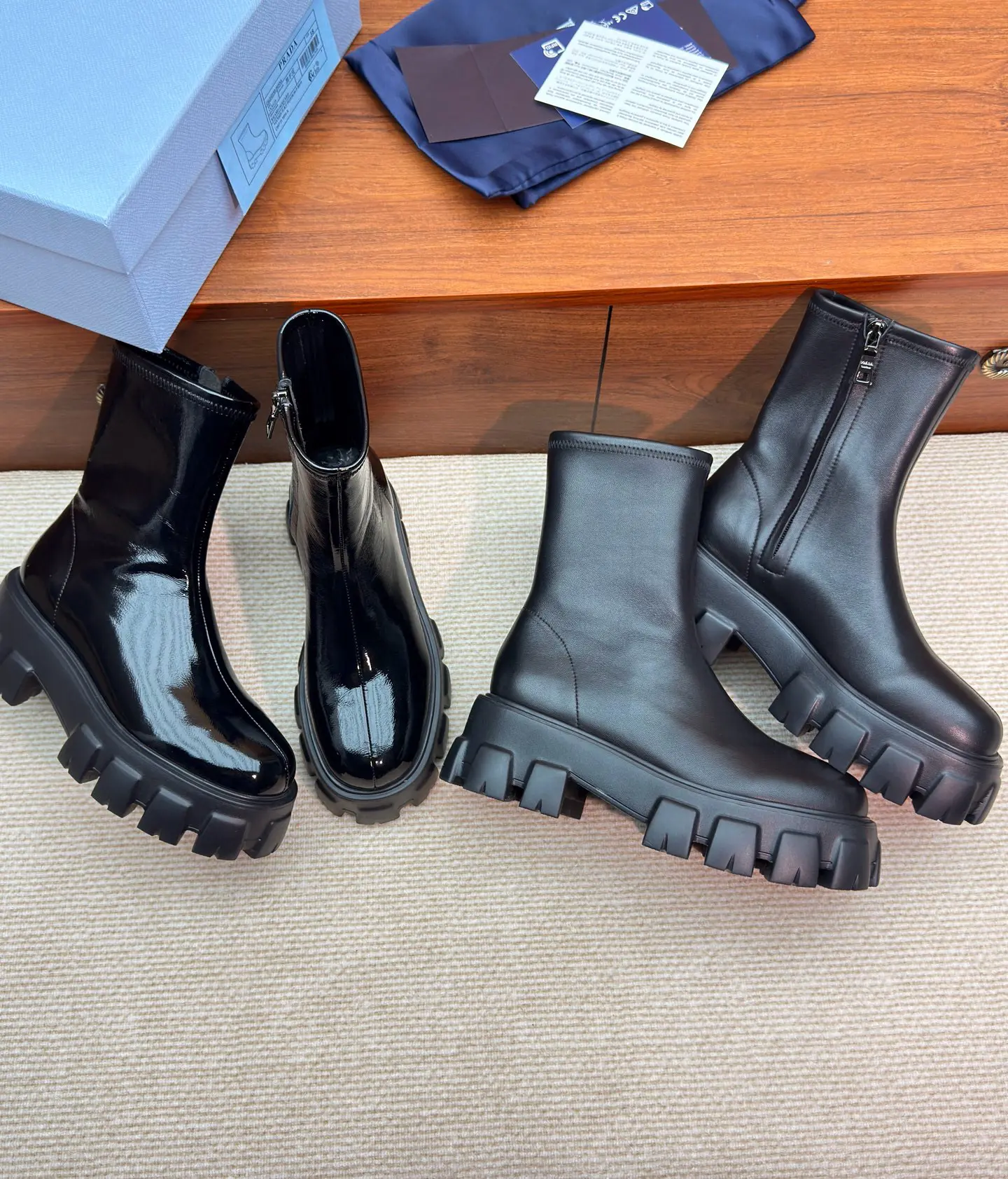 Top-tier Prada’s new lambskin platform ankle boots!!!
