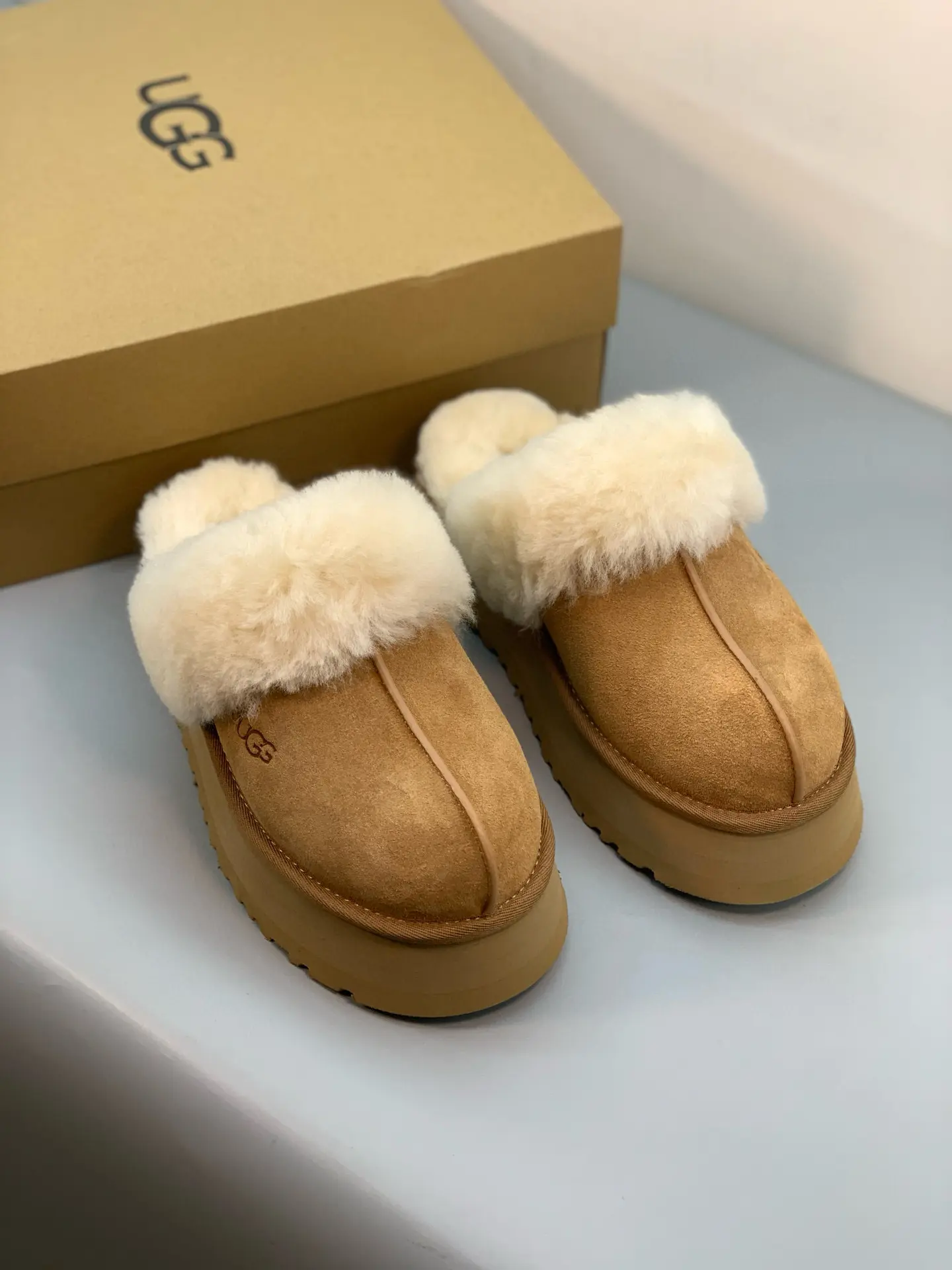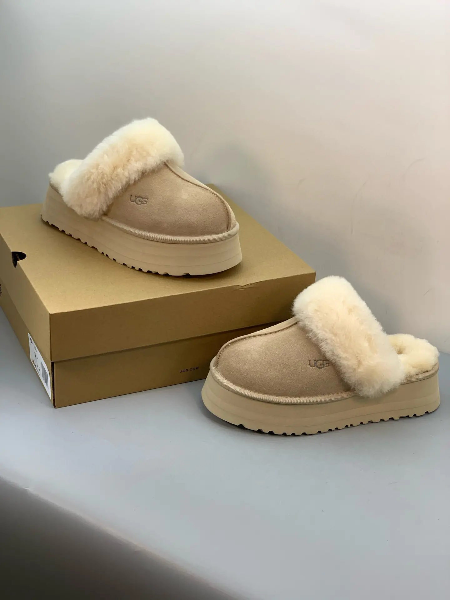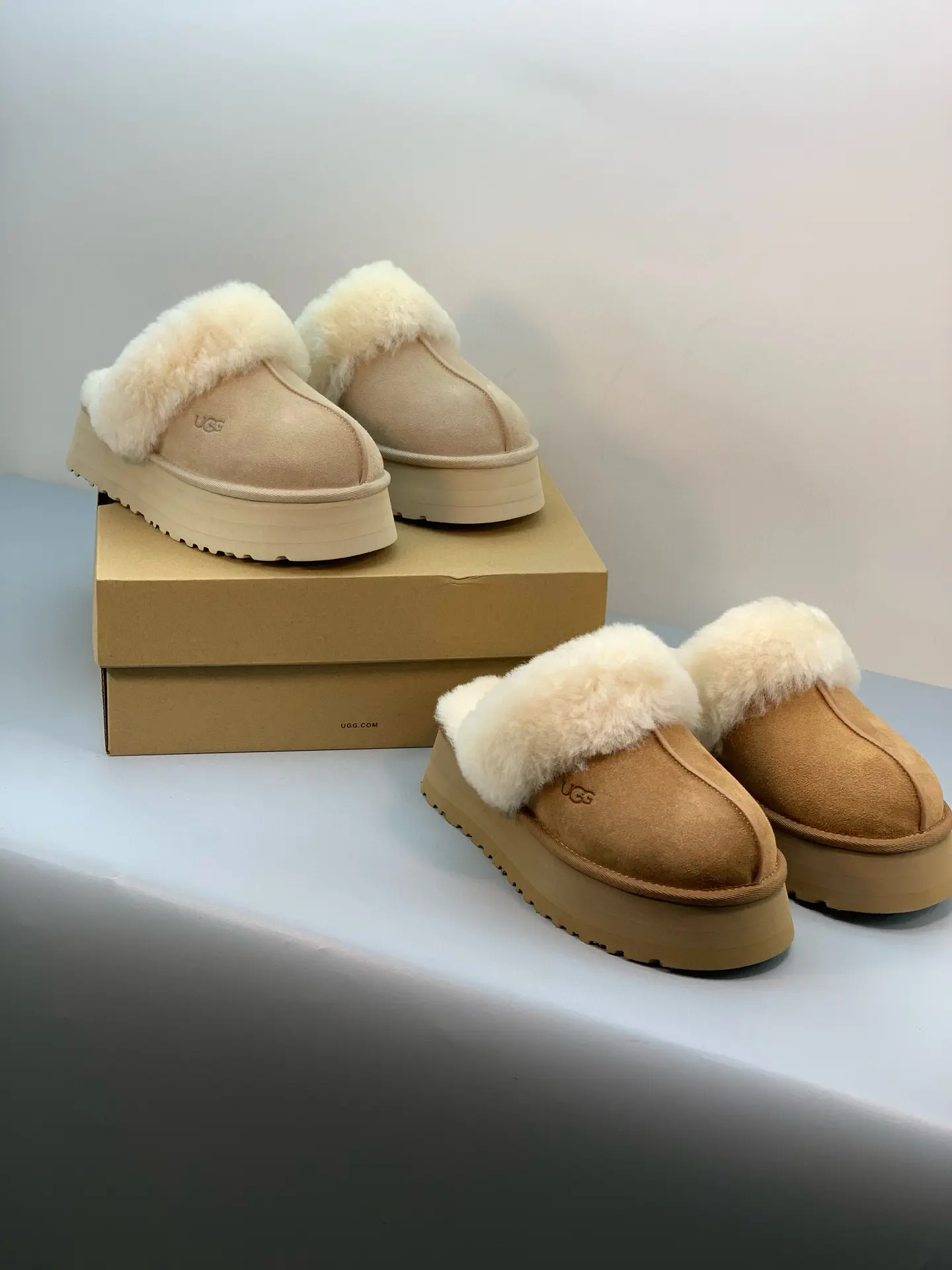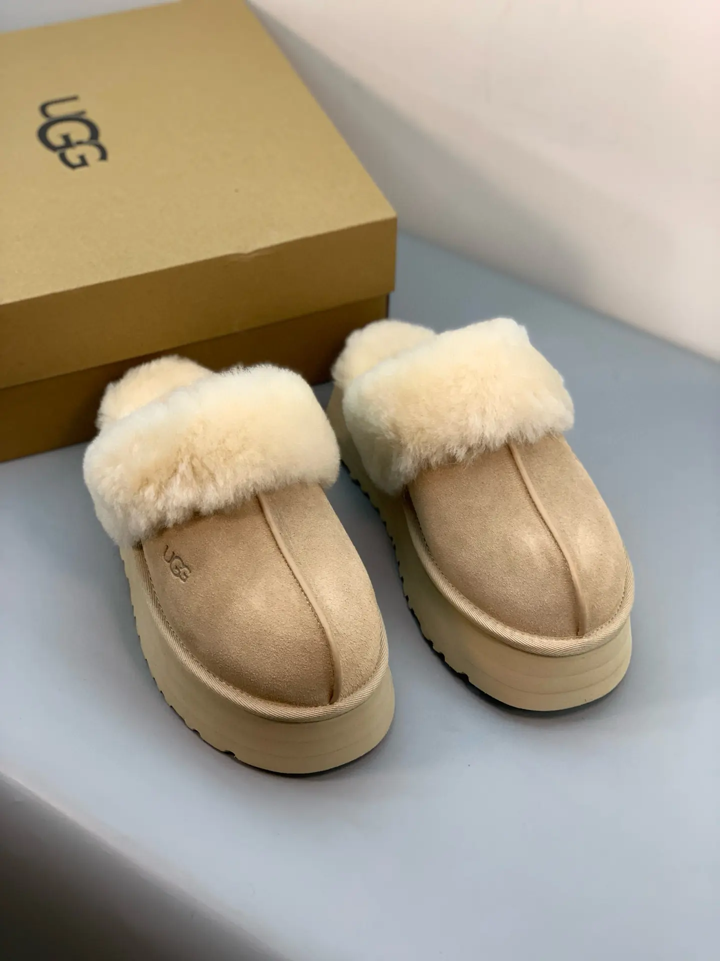 UGG’s new thick-soled slippers, perfect for casual wear.