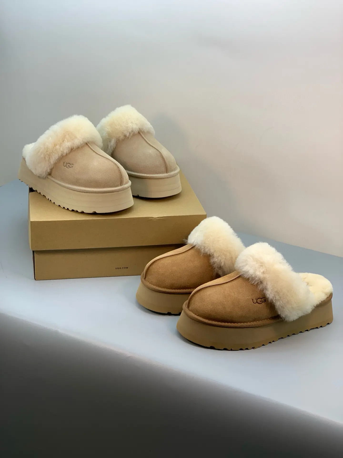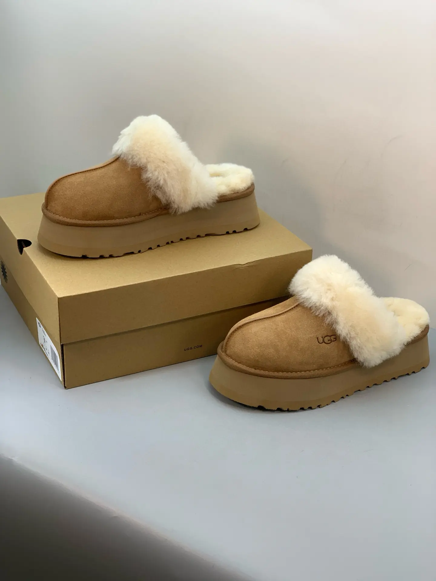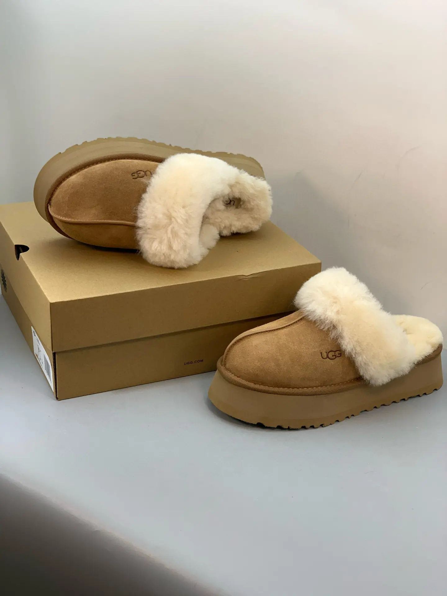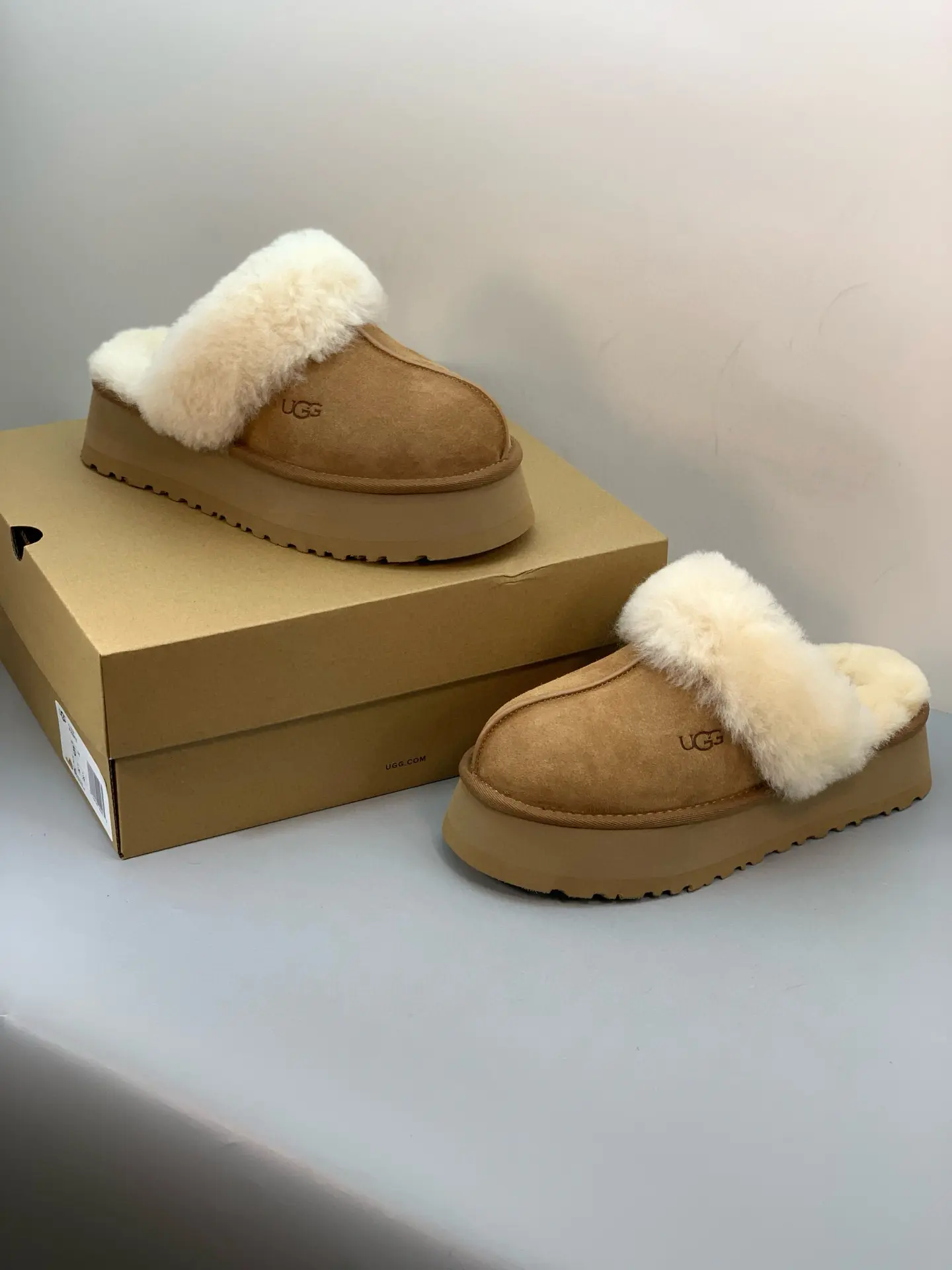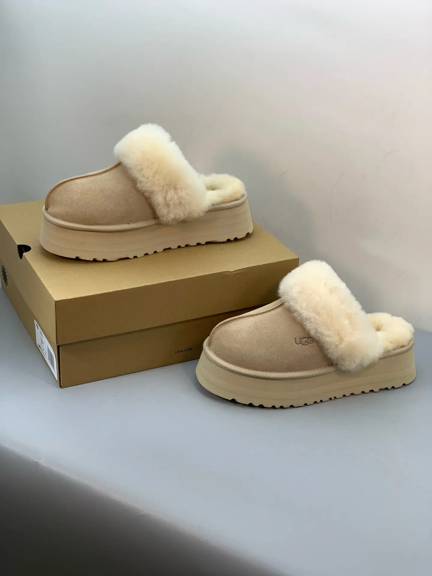 UGG’s new thick-soled slippers, perfect for casual wear.