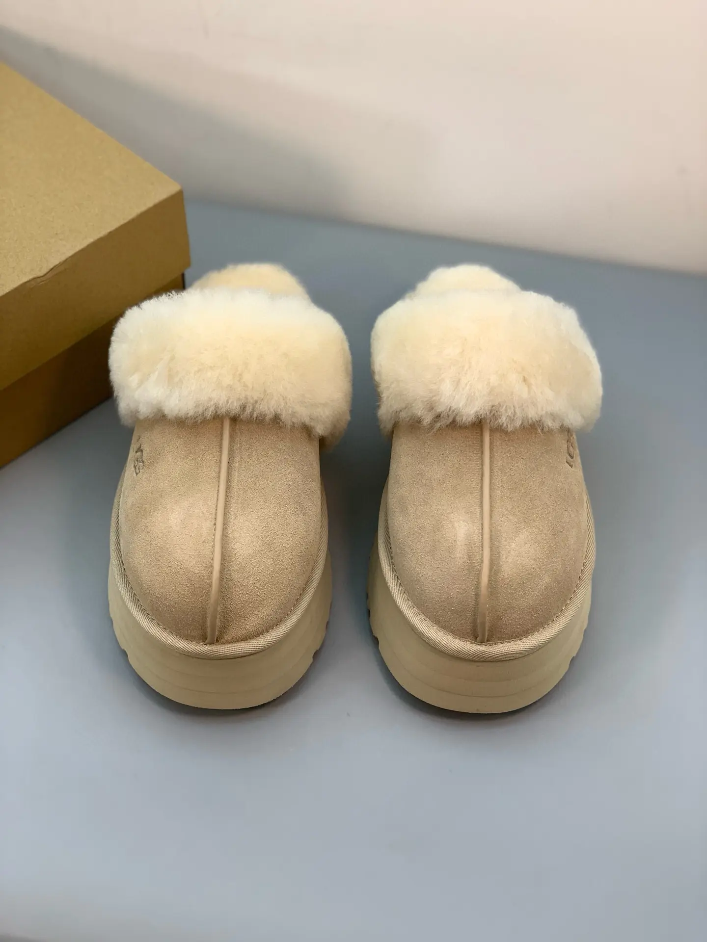 Embrace effortless style and cloud-like comfort with our top-tier, Dongguan-crafted platform slippers. Inspired by UGG’s cozy aesthetic, these are the ultimate footwear for lazy autumn and winter days.