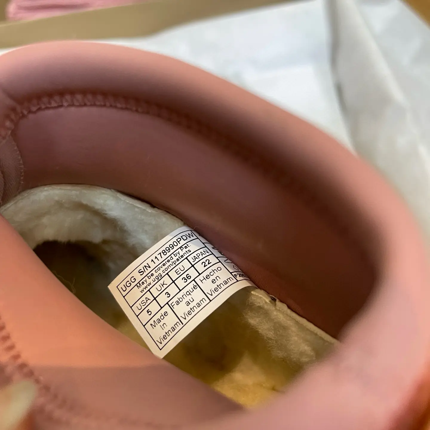 “Treadlite By Ugg lightweight outsole”: This is a significant red flag. “Treadlite” is a proprietary outsole technology belonging to the UGG brand. The use of this specific trademarked term is a strong indicator that this is a counterfeit product, not just an “inspired-by” dupe.
