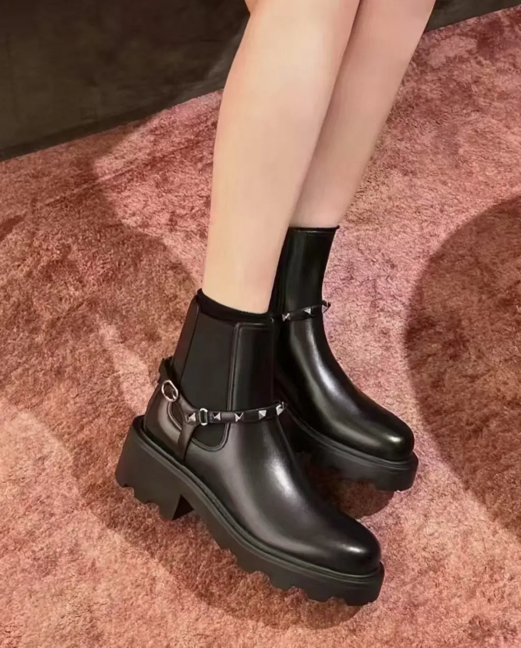 The exquisite, refined feel of these Valentino calfskin mid-calf boots is simply stunning. The adjustable buckle strap is incredibly beautiful. The deep black leather and the striking rivets are quite striking. I’m wearing a 5.5cm platform. The shoe is more like a Chelsea boot, flattering the calf and creating a modern look. For those who prefer a cool, niche autumn/winter boot, I recommend these. 🔸 The upper is made of imported calfskin, known for its unique flexibility, excellent wear resistance, and smooth, delicate texture. 🔸 The boot features a patchwork design with elastic side panels for a comfortable fit that accommodates different foot shapes. 🔸 The lining and footbed are made of sheepskin. 🔸 The lightweight rubber outsole offers excellent elasticity. 🔸 Sizes: 35-40