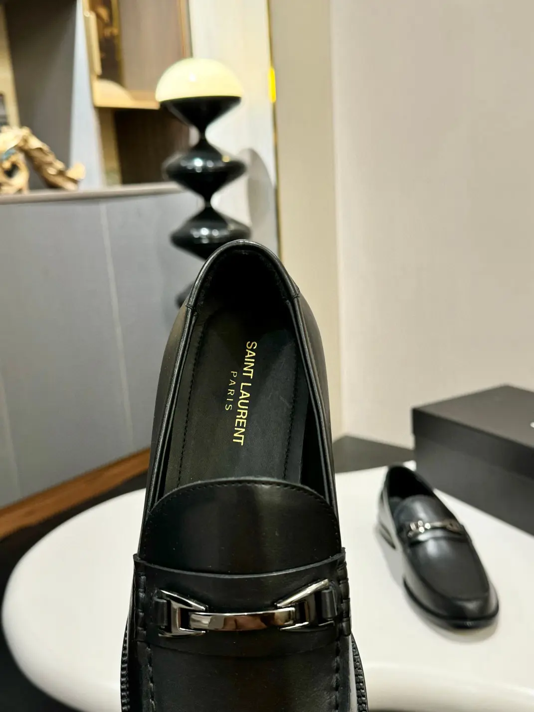It looks like you’re describing a high-quality replica of Yves Saint Laurent (YSL) men’s formal leather shoes. Here’s a breakdown of the key features you mentioned: