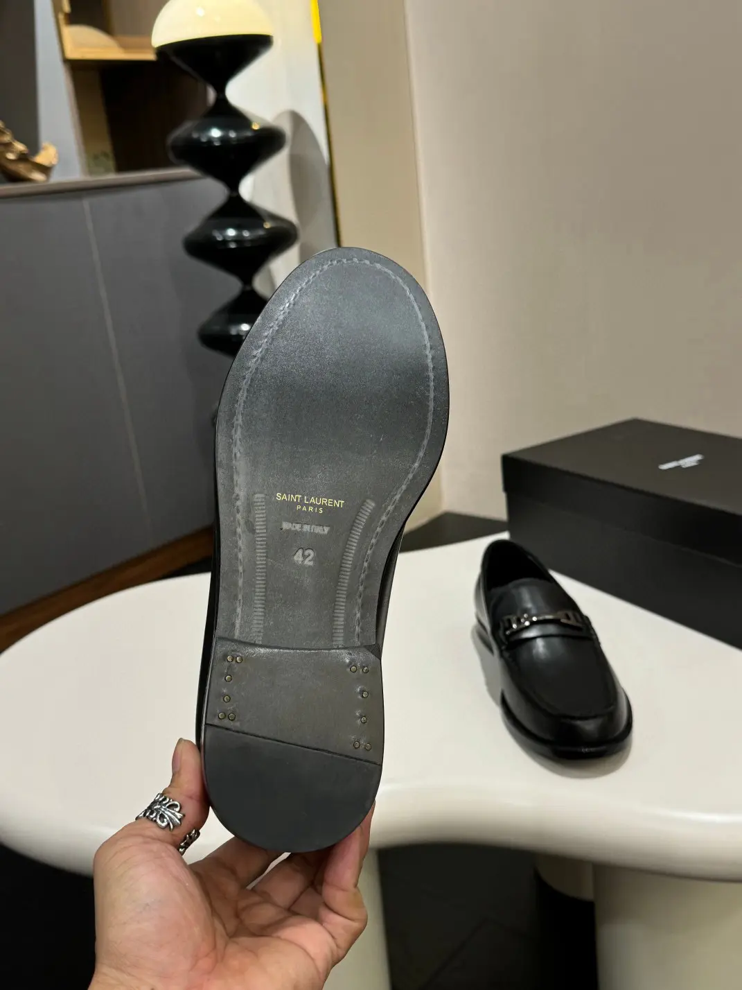 Yves Saint Laurent~ YSL Saint Laurent men’s formal leather shoes, top-grade replica, made of imported open-edge beaded cowhide, with imported hardware pendants, water-dyed cowhide breathable lining, original imported genuine leather outsole, top quality! Size: 39-44 (38.45.46 custom made)
