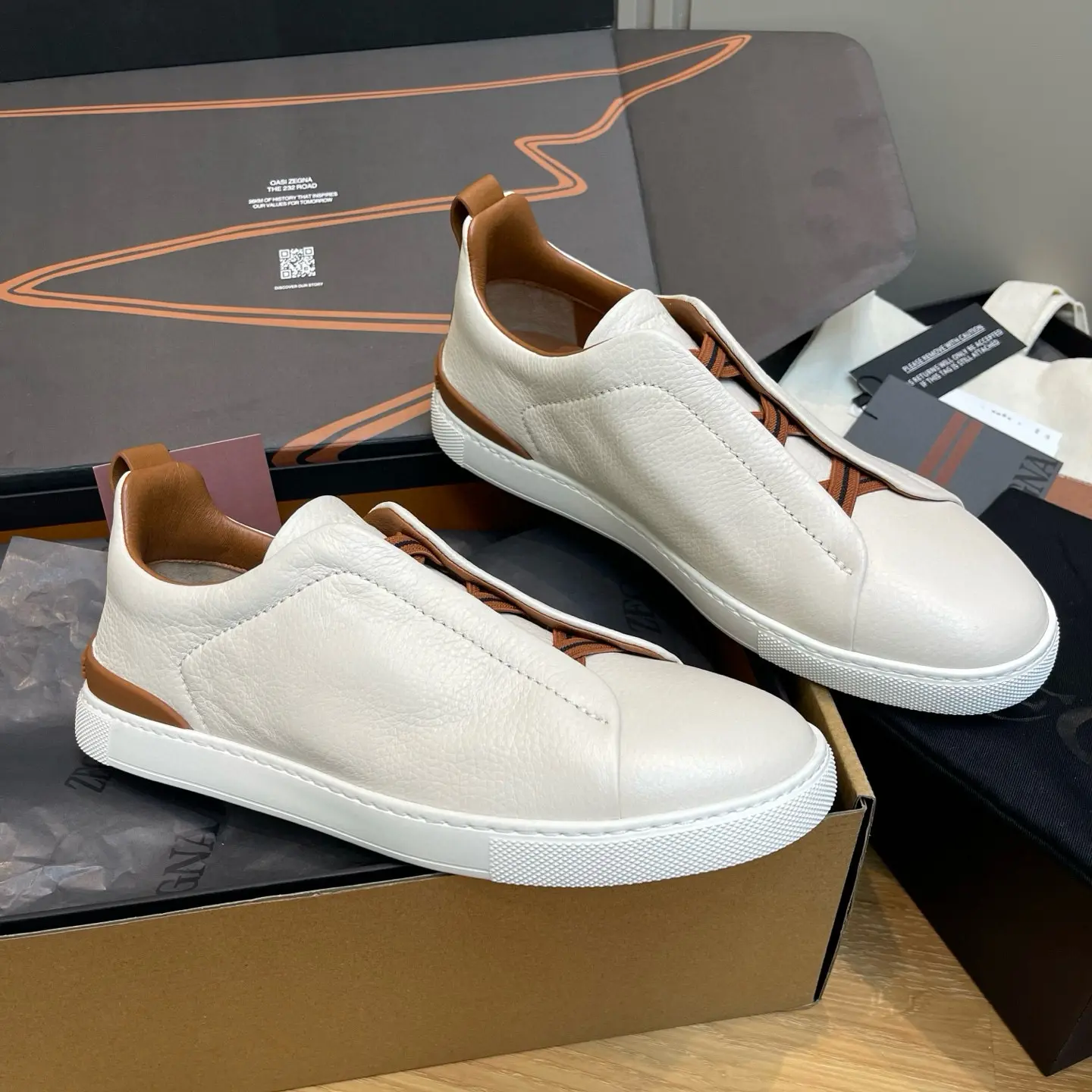 These Triple Stitch ™ luxury casual shoes are made of imported deerskin to interpret casual shoes in a sophisticated style. The casual shoe is decorated with the signature triple cross-strength details, paying tribute to the hand-sewing craftsmanship of the brand’s tailored jacket, cleverly connecting modern and fashionable shoe shapes with the long-standing tradition of craftsmanship of Zenia. Lightweight rubber sole complements Foliage-colored heel
