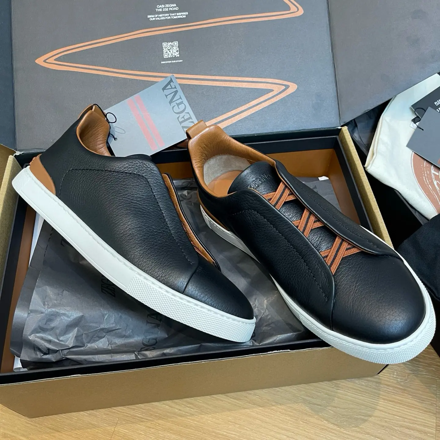 Over 90 individual parts assembled with precision, reflecting Zegna’s heritage of hand-sewn tailoring.